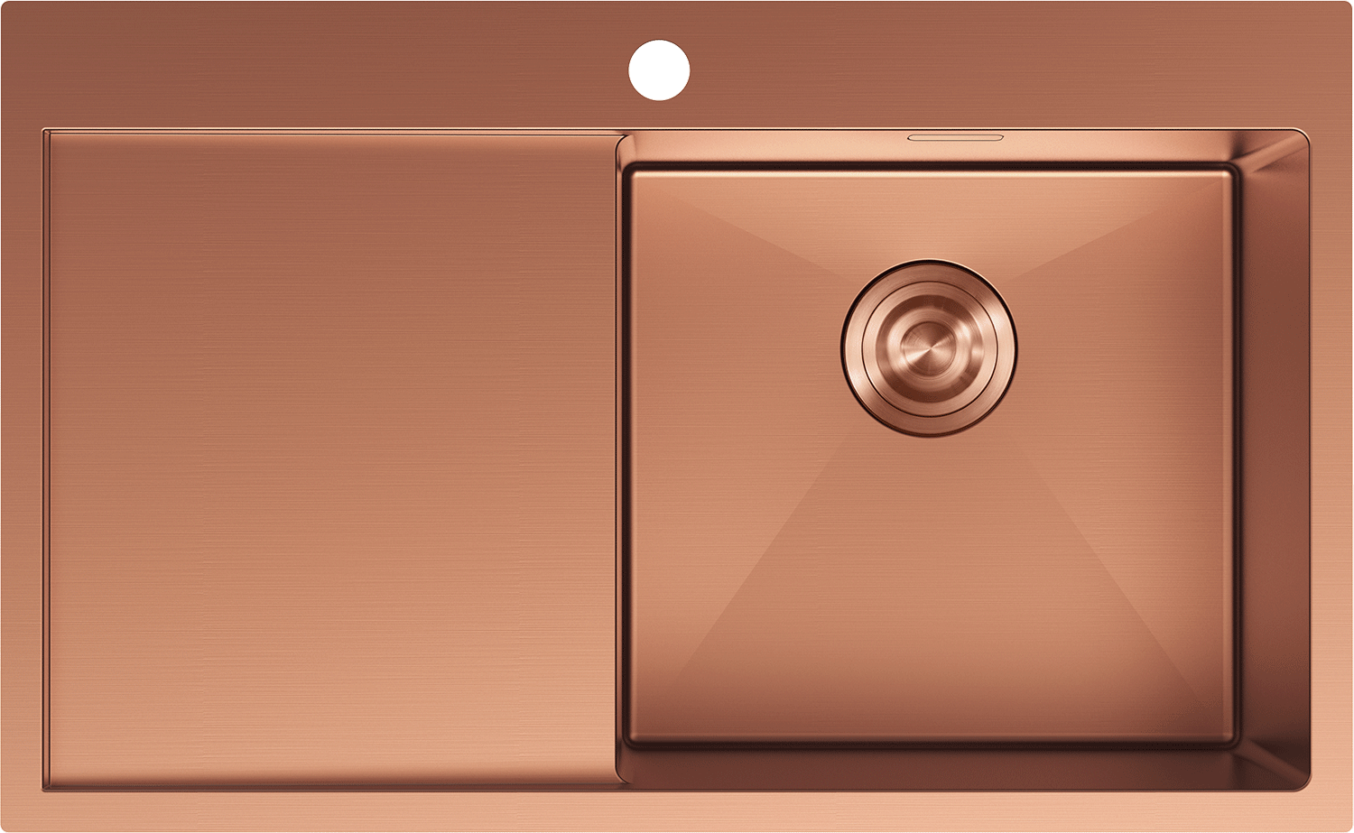 Choosing a sink with a draining board is a practical solution that allows you to set aside washed dishes or vegetables and fruits. The draining board makes daily cooking easier and helps maintain order in the kitchen.