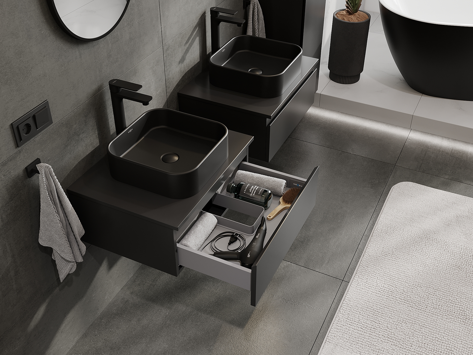 Our modular bathroom furniture can be combined in various colour configurations, allowing for complete personalisation. You can choose both the appearance and functions of individual elements, enabling you to adapt the furniture to your own stylistic and functional preferences.