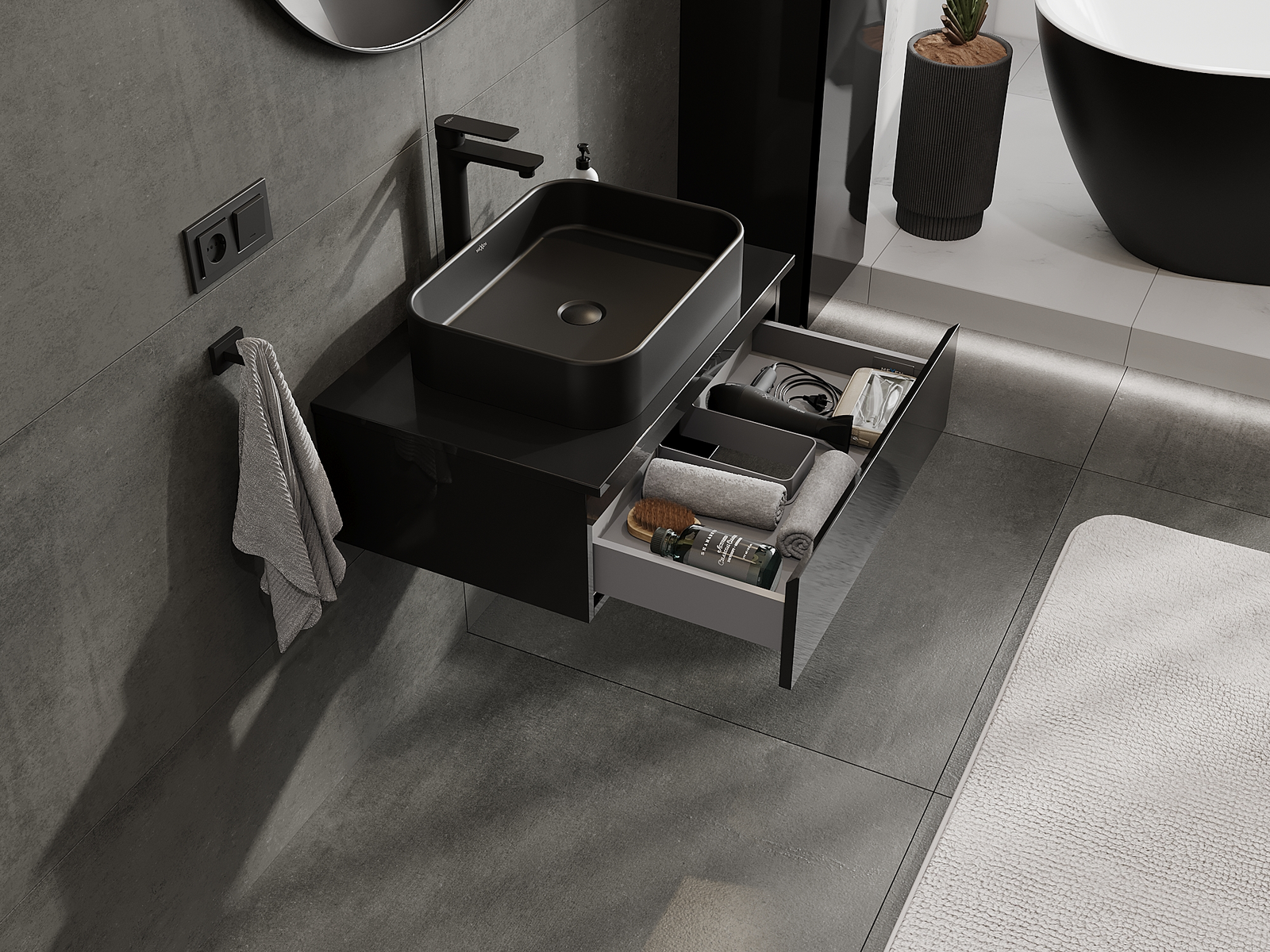 Our modular bathroom furniture can be combined in various colour configurations, allowing for complete personalisation. You can choose both the appearance and functions of individual elements, enabling you to adapt the furniture to your own stylistic and functional preferences.
