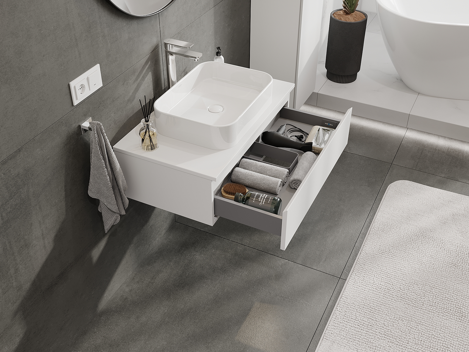 Our modular bathroom furniture can be combined in various colour configurations, allowing for complete personalisation. You can choose both the appearance and functions of individual elements, enabling you to adapt the furniture to your own stylistic and functional preferences.