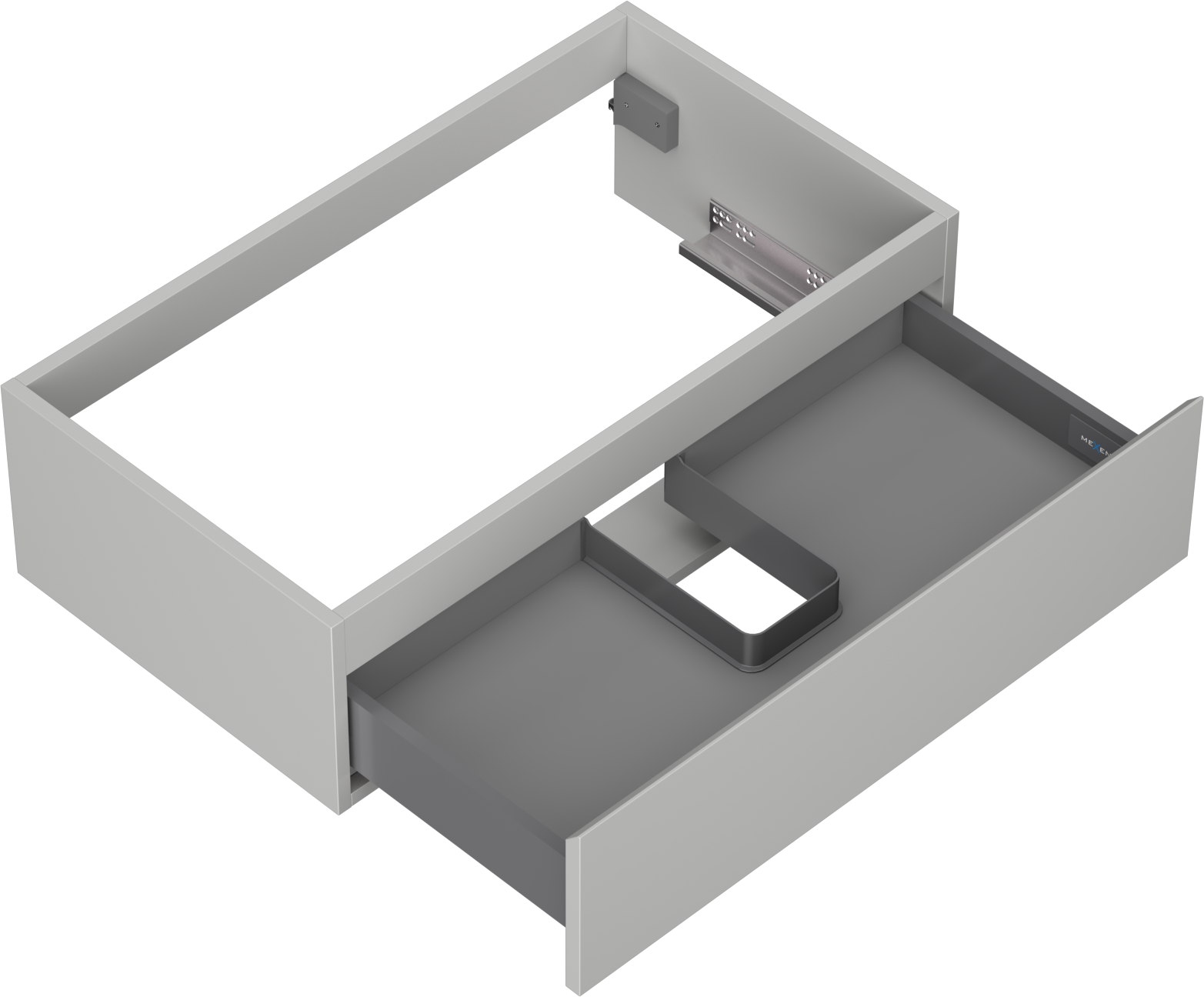 The cutout in the drawer is designed in such a way as to accommodate the siphon, which is essential in sink installations. This allows the furniture to be fully functional without having to give up drawer space for the installation.
