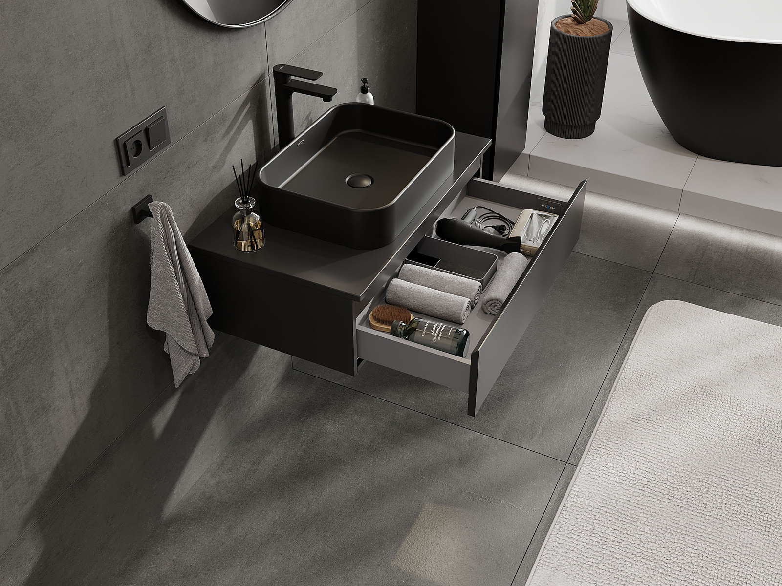 Mexen Orio 80 cm Bathroom Cabinet, 1 Drawer, Matte Black - 91A10-08023-1-BF71