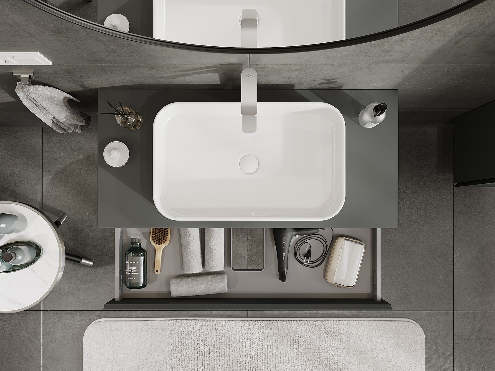 Our modular bathroom furniture can be combined in various colour configurations, allowing for complete personalisation. You can choose both the appearance and functions of individual elements, enabling you to adapt the furniture to your own stylistic and functional preferences.