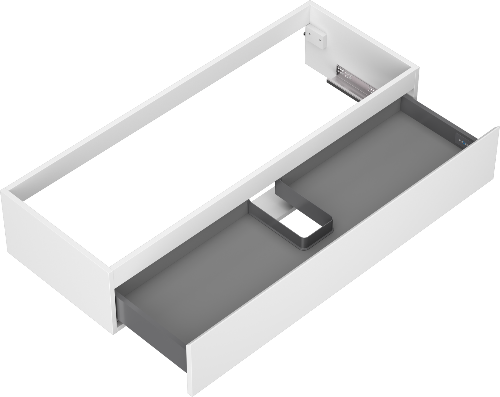 The cutout in the drawer is designed in such a way as to accommodate the siphon, which is essential in sink installations. This allows the furniture to be fully functional without having to give up drawer space for the installation.