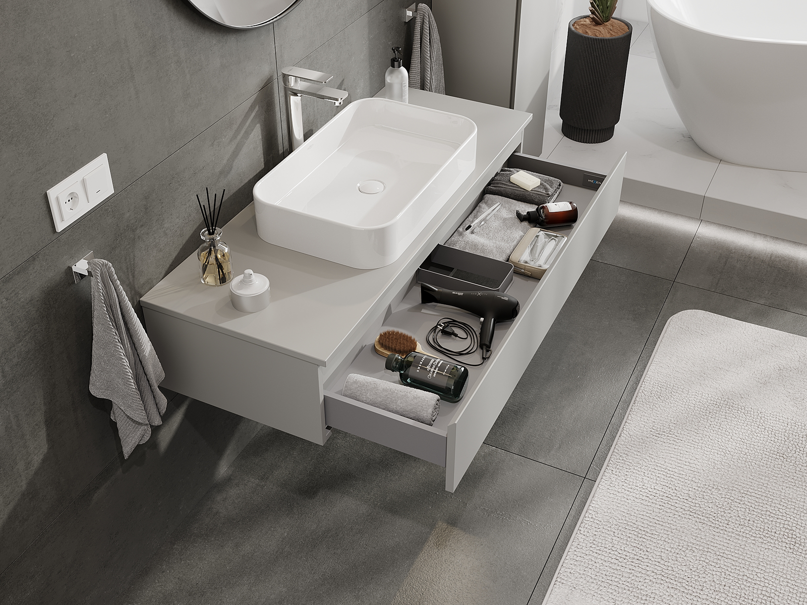 Our modular bathroom furniture can be combined in various colour configurations, allowing for complete personalisation. You can choose both the appearance and functions of individual elements, enabling you to adapt the furniture to your own stylistic and functional preferences.