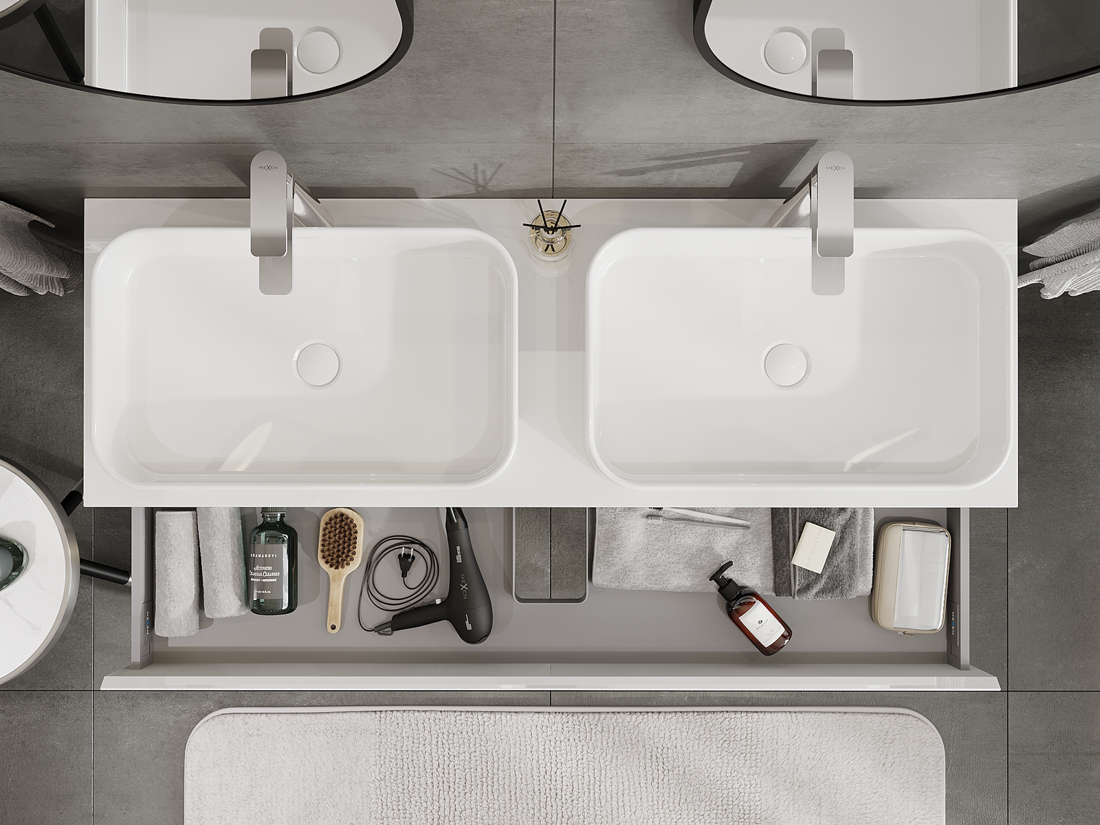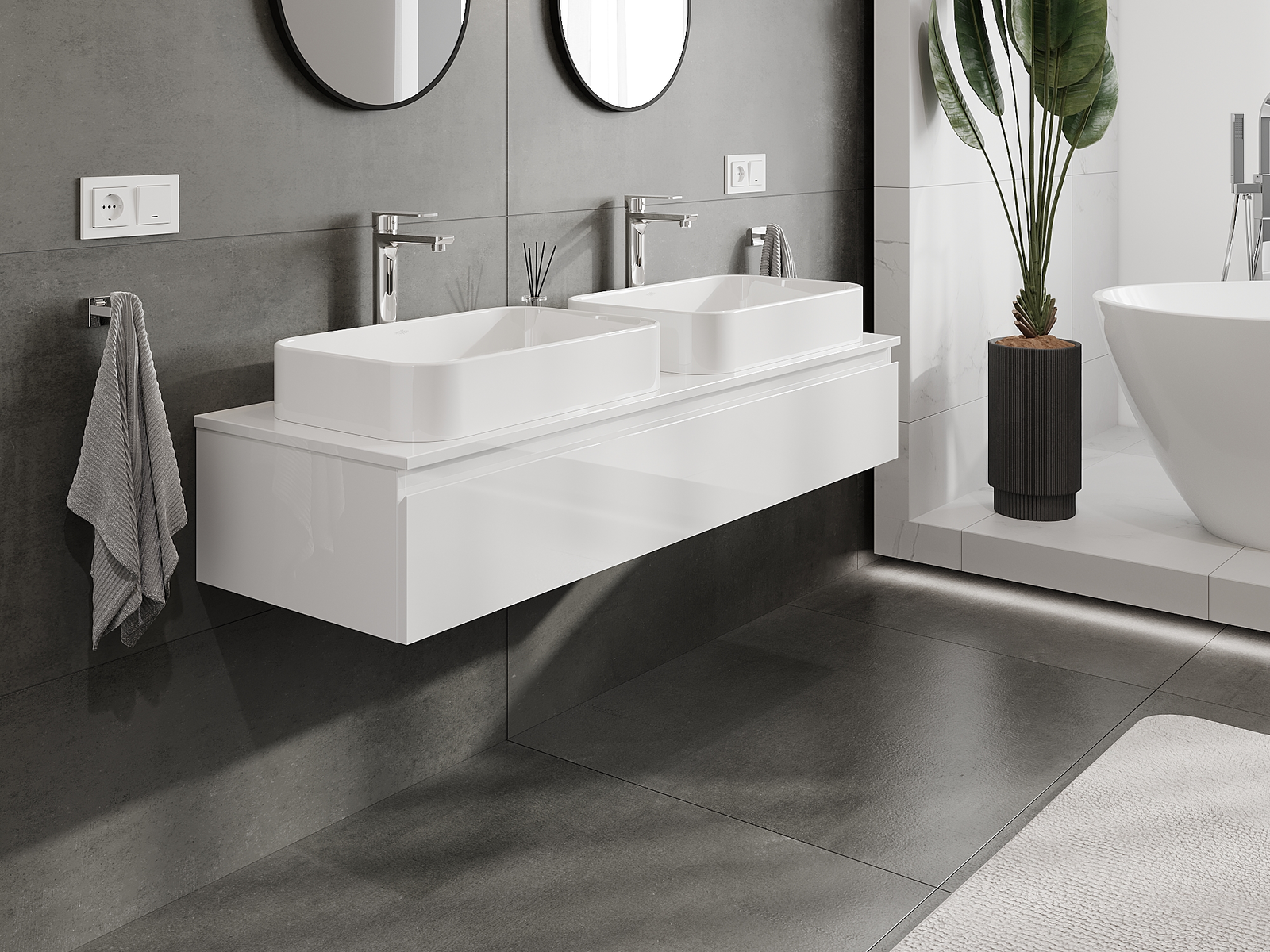 Our modular bathroom furniture can be combined in various colour configurations, allowing for complete personalisation. You can choose both the appearance and functions of individual elements, enabling you to adapt the furniture to your own stylistic and functional preferences.