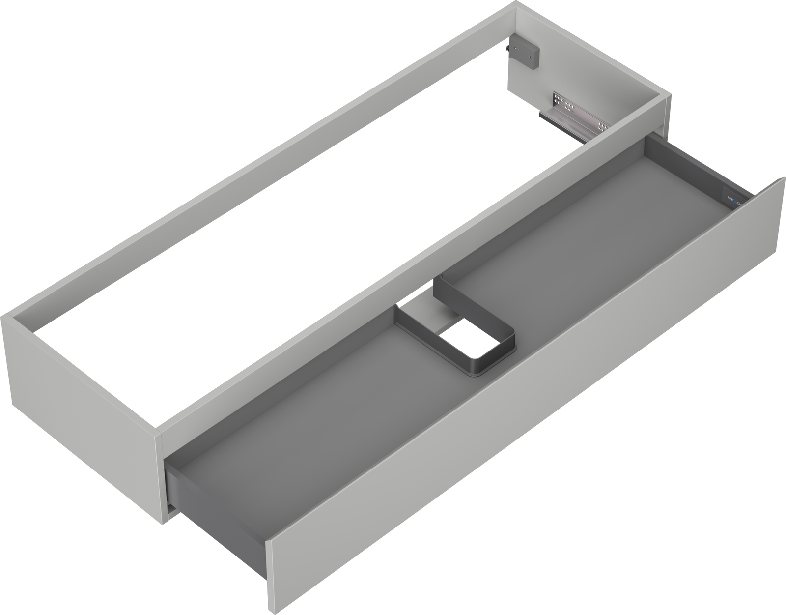 The cutout in the drawer is designed in such a way as to accommodate the siphon, which is essential in sink installations. This allows the furniture to be fully functional without having to give up drawer space for the installation.