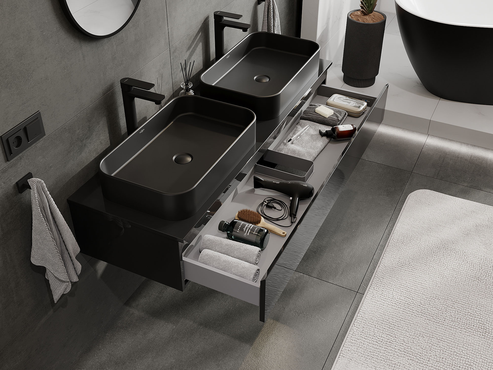 Our modular bathroom furniture can be combined in various colour configurations, allowing for complete personalisation. You can choose both the appearance and functions of individual elements, enabling you to adapt the furniture to your own stylistic and functional preferences.
