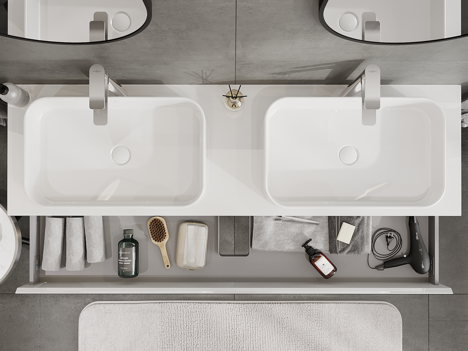Mexen Orio bathroom cabinet for under-sink 160 cm, 1 drawer, white gloss - 91A10-16023-1-BF00