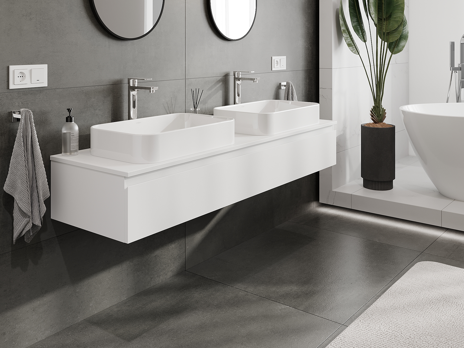 Our modular bathroom furniture can be combined in various colour configurations, allowing for complete personalisation. You can choose both the appearance and functions of individual elements, enabling you to adapt the furniture to your own stylistic and functional preferences.