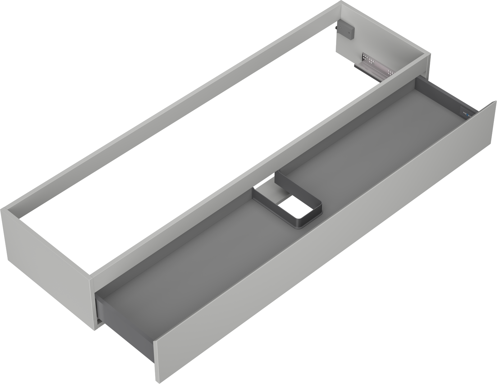 The cutout in the drawer is designed in such a way as to accommodate the siphon, which is essential in sink installations. This allows the furniture to be fully functional without having to give up drawer space for the installation.