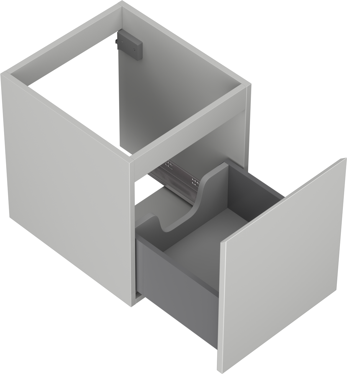 The cutout in the drawer is designed in such a way as to accommodate the siphon, which is essential in sink installations. This allows the furniture to be fully functional without having to give up drawer space for the installation.