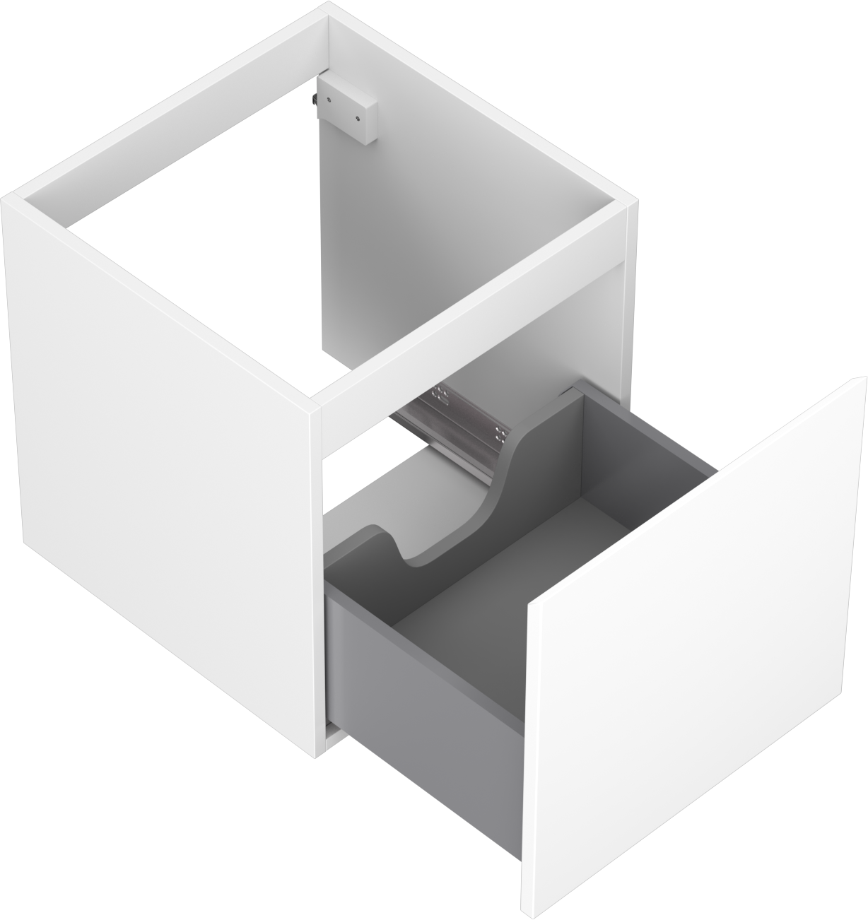 The cutout in the drawer is designed in such a way as to accommodate the siphon, which is essential in sink installations. This allows the furniture to be fully functional without having to give up drawer space for the installation.