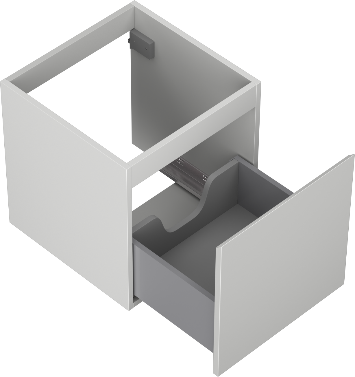 The cutout in the drawer is designed in such a way as to accommodate the siphon, which is essential in sink installations. This allows the furniture to be fully functional without having to give up drawer space for the installation.