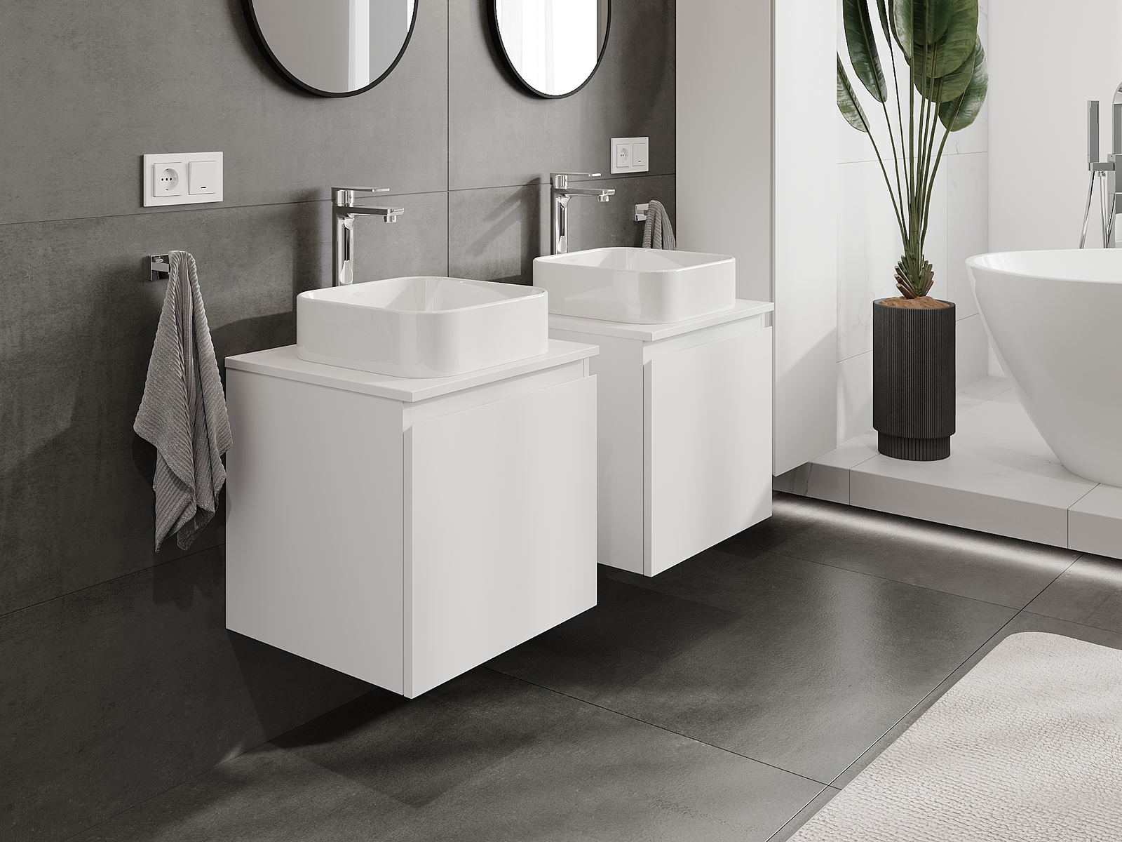 Our modular bathroom furniture can be combined in various colour configurations, allowing for complete personalisation. You can choose both the appearance and functions of individual elements, enabling you to adapt the furniture to your own stylistic and functional preferences.