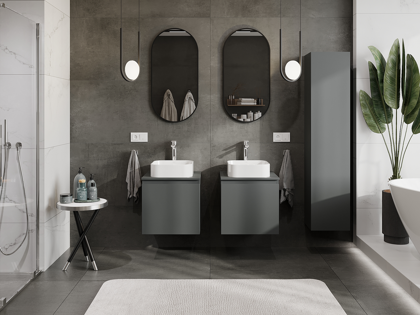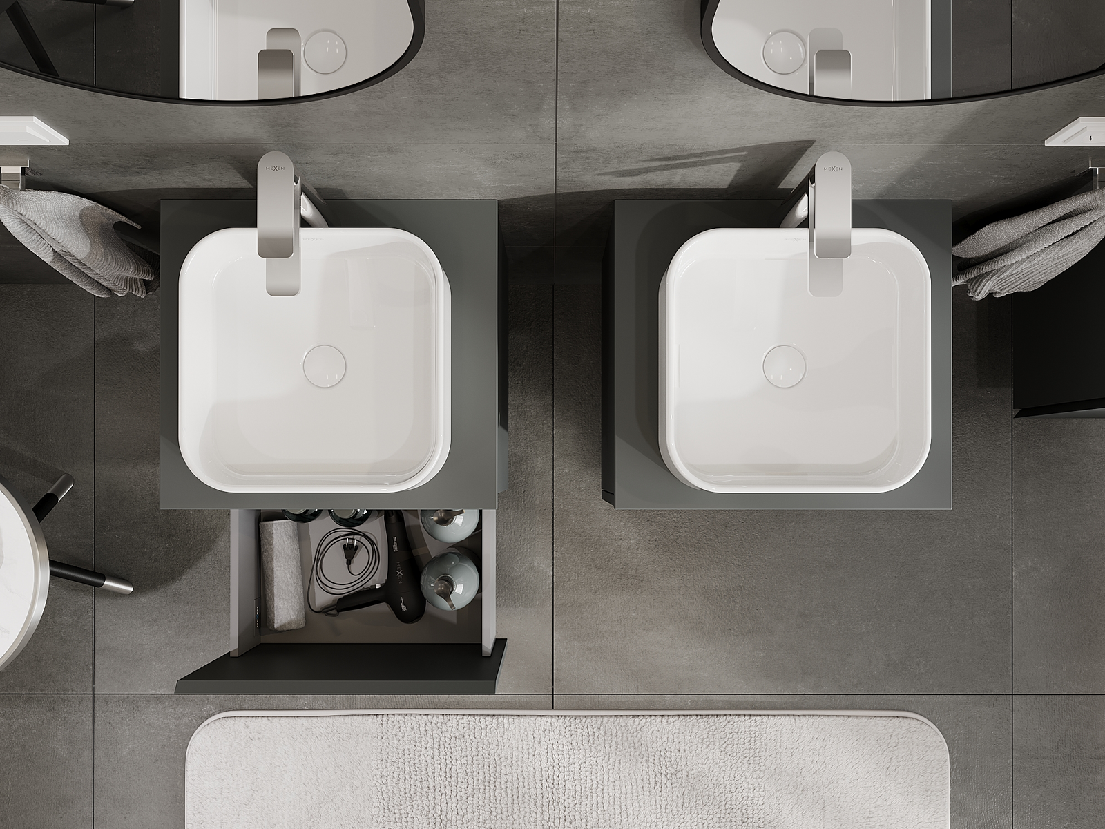 Our modular bathroom furniture can be combined in various colour configurations, allowing for complete personalisation. You can choose both the appearance and functions of individual elements, enabling you to adapt the furniture to your own stylistic and functional preferences.