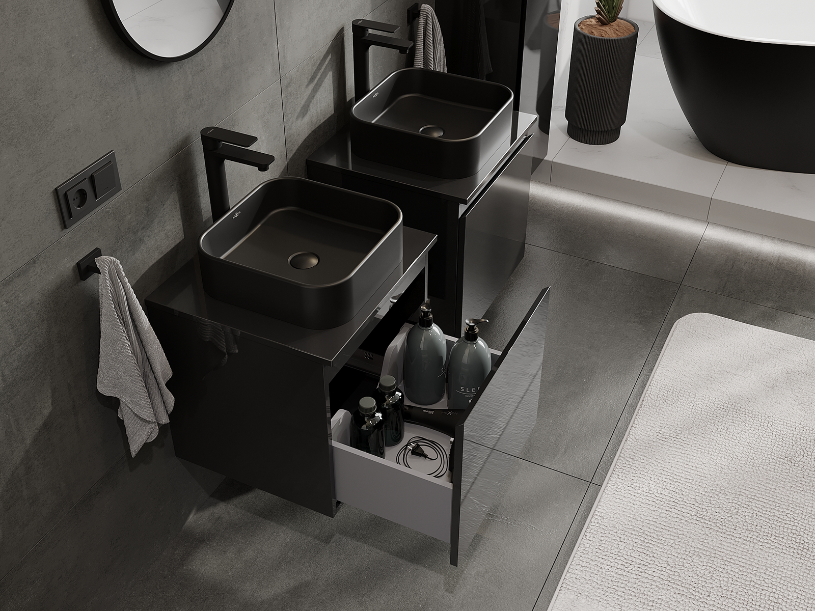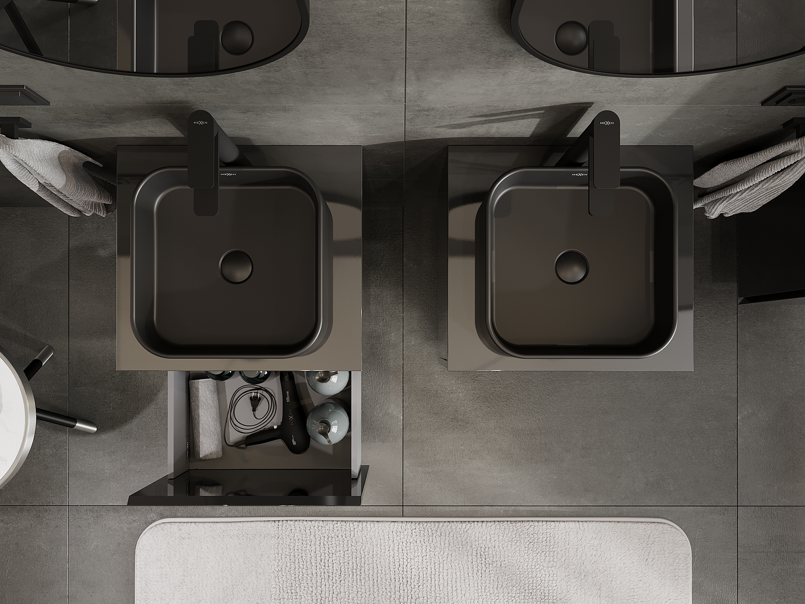 Our modular bathroom furniture can be combined in various colour configurations, allowing for complete personalisation. You can choose both the appearance and functions of individual elements, enabling you to adapt the furniture to your own stylistic and functional preferences.