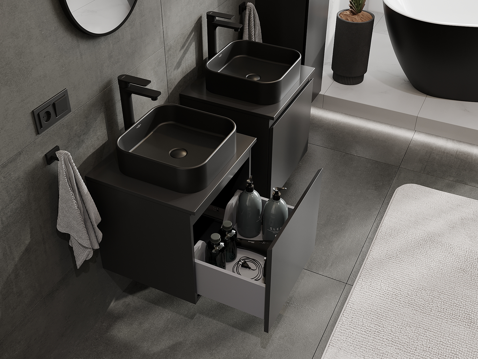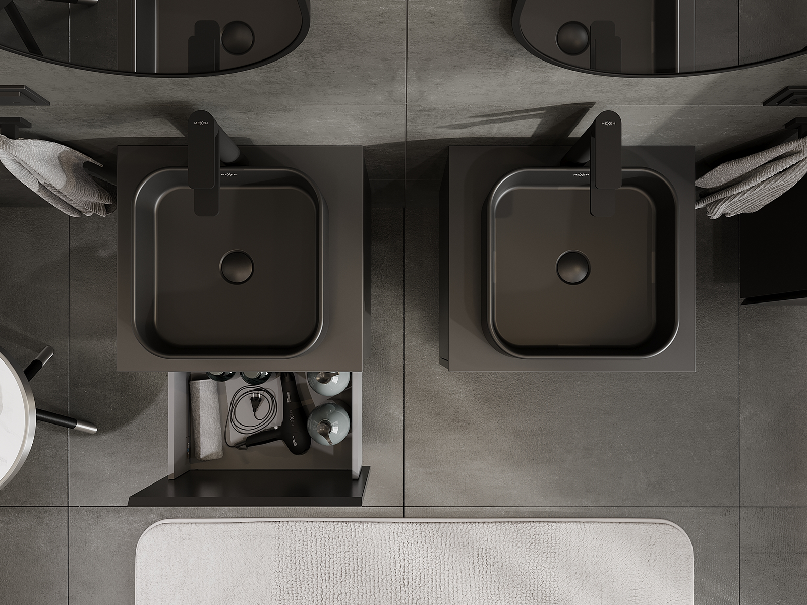 Our modular bathroom furniture can be combined in various colour configurations, allowing for complete personalisation. You can choose both the appearance and functions of individual elements, enabling you to adapt the furniture to your own stylistic and functional preferences.