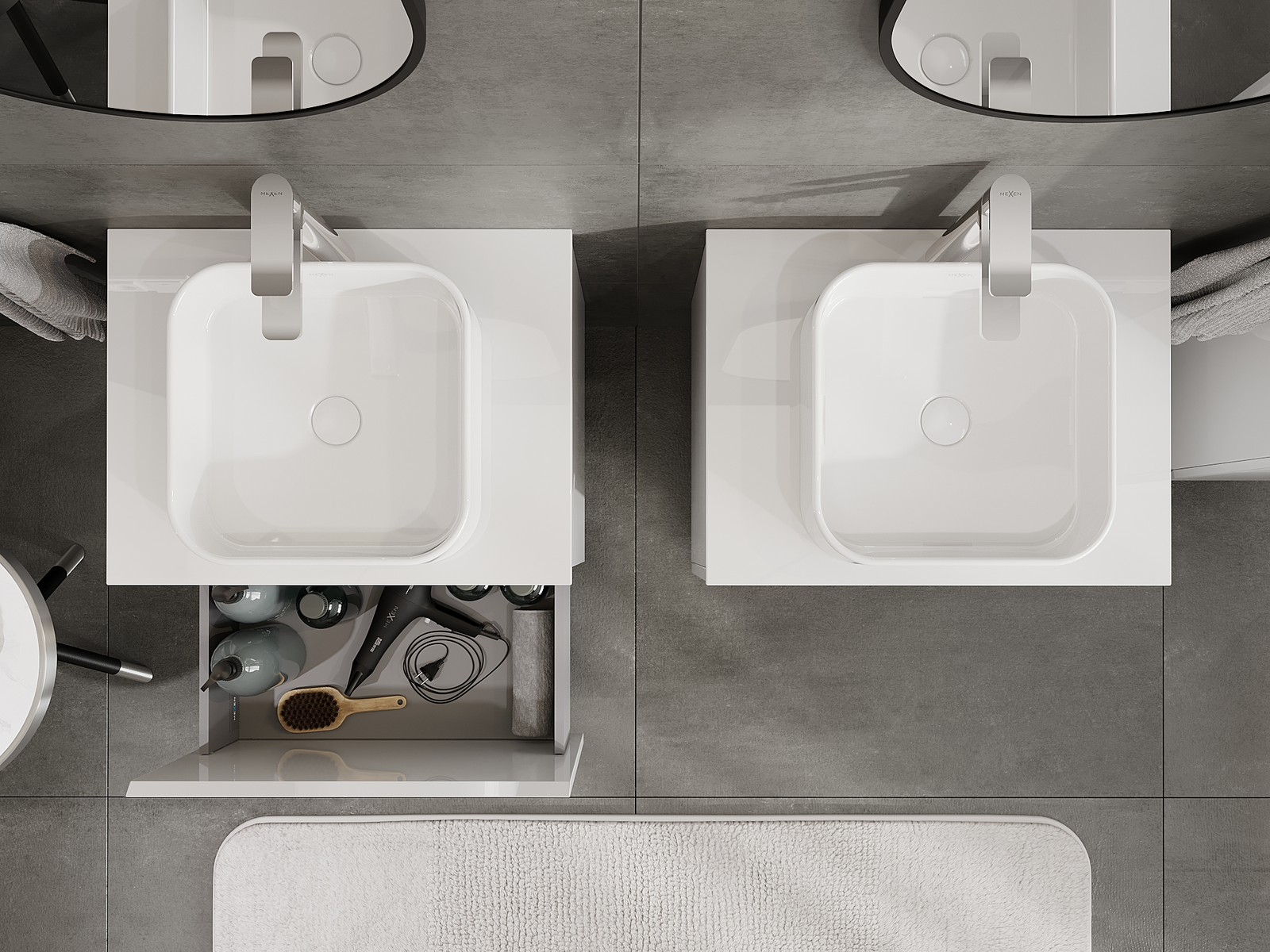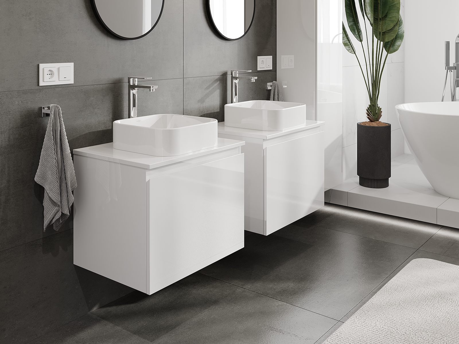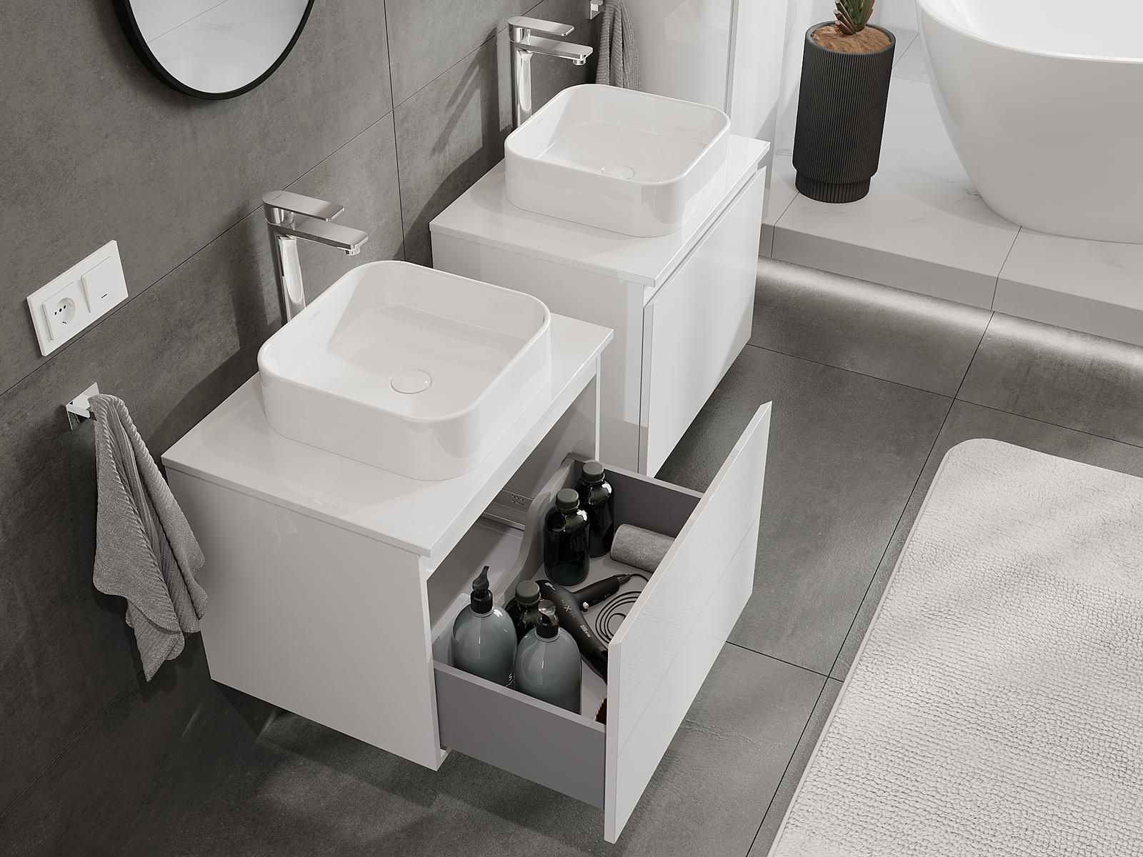 Our modular bathroom furniture can be combined in various colour configurations, allowing for complete personalisation. You can choose both the appearance and functions of individual elements, enabling you to adapt the furniture to your own stylistic and functional preferences.