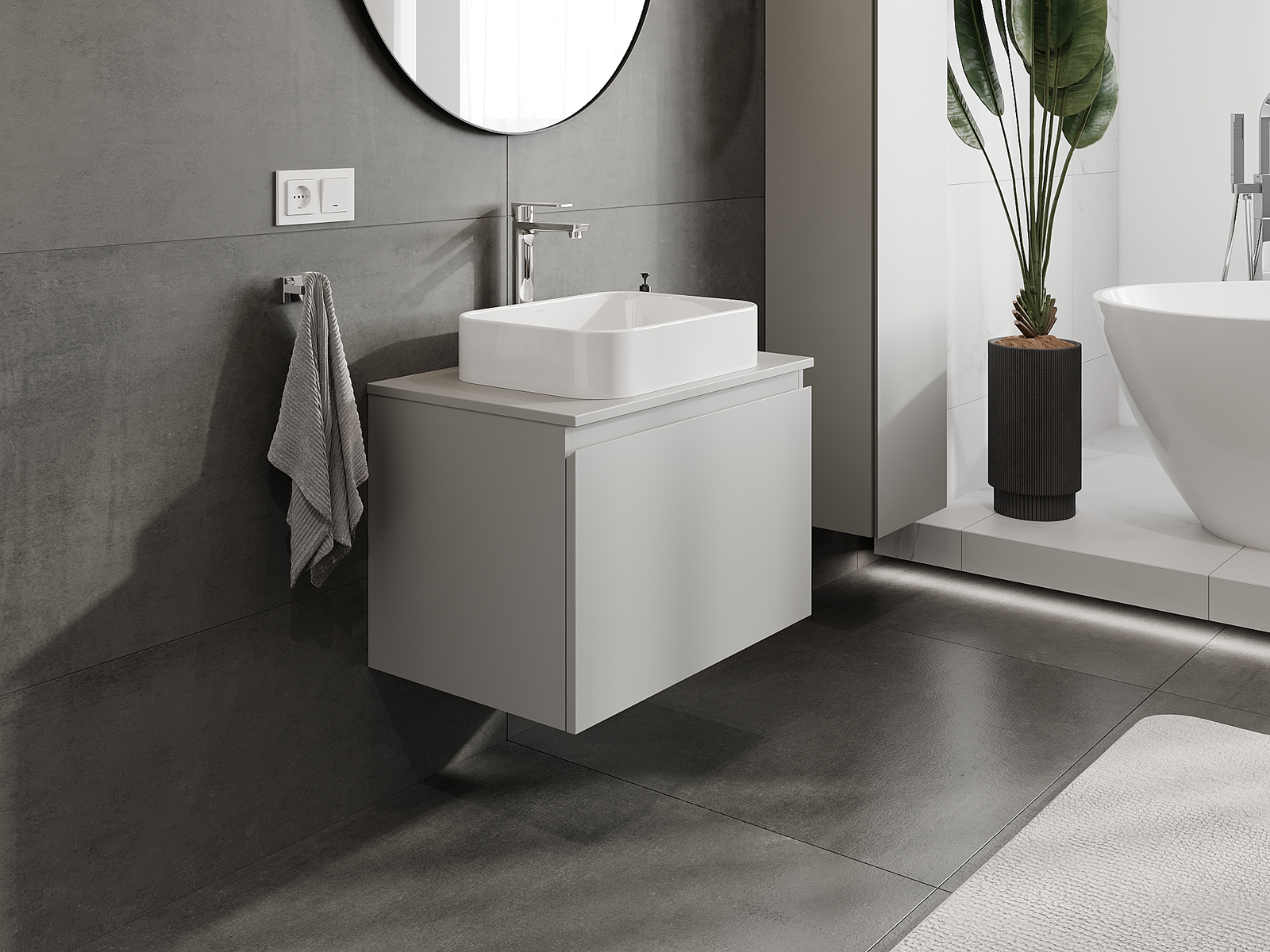 Our modular bathroom furniture can be combined in various colour configurations, allowing for complete personalisation. You can choose both the appearance and functions of individual elements, enabling you to adapt the furniture to your own stylistic and functional preferences.
