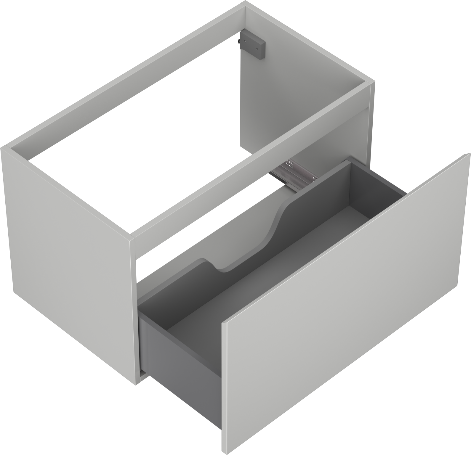 The cutout in the drawer is designed in such a way as to accommodate the siphon, which is essential in sink installations. This allows the furniture to be fully functional without having to give up drawer space for the installation.