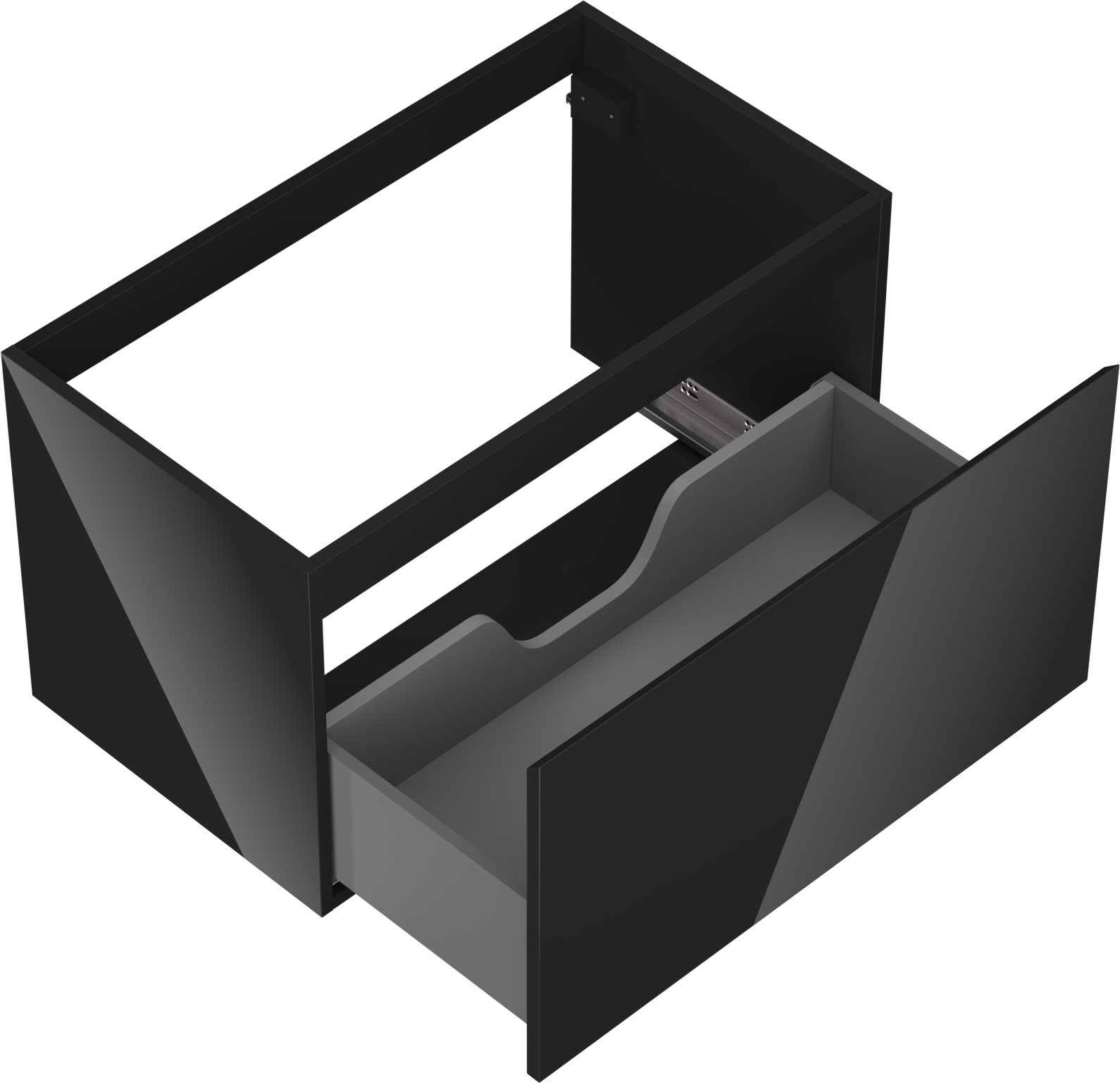 The cutout in the drawer is designed in such a way as to accommodate the siphon, which is essential in sink installations. This allows the furniture to be fully functional without having to give up drawer space for the installation.