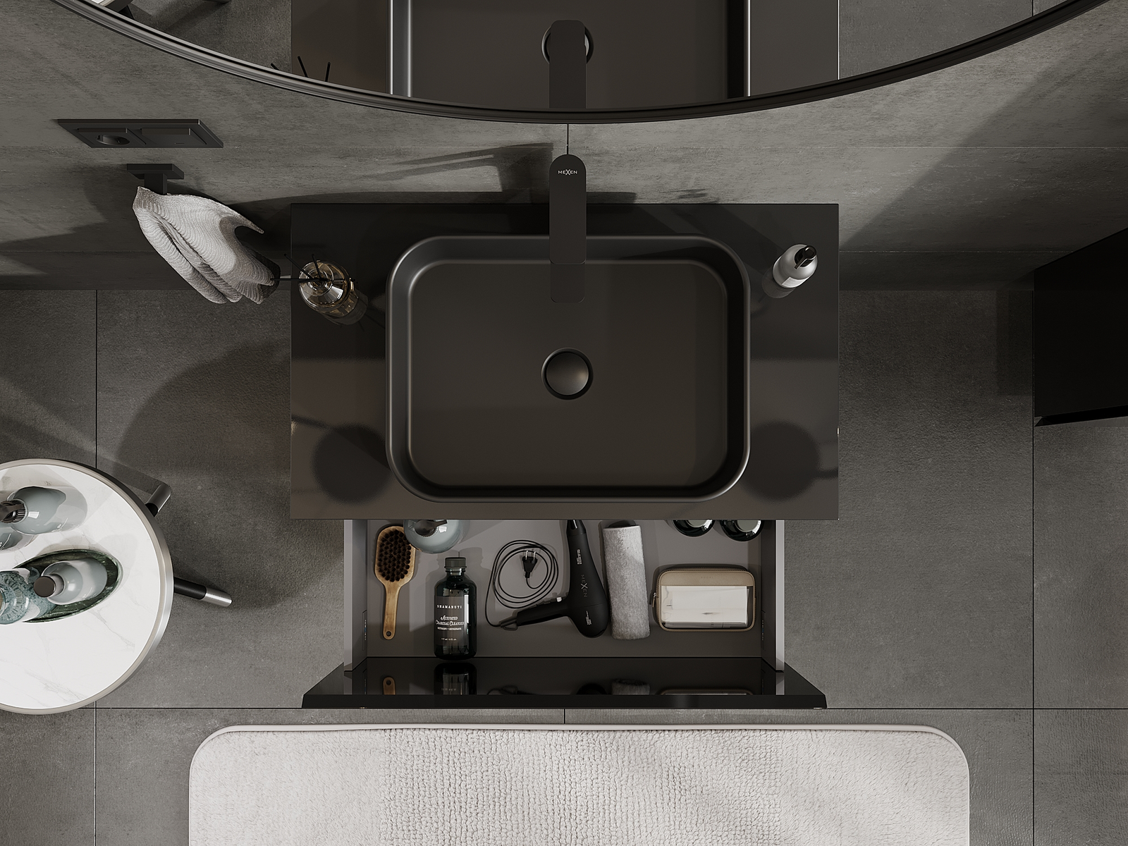 Mexen Orio bathroom cabinet for sink 80 cm, 1 drawer, black gloss - 91A10-08047-1-BF70