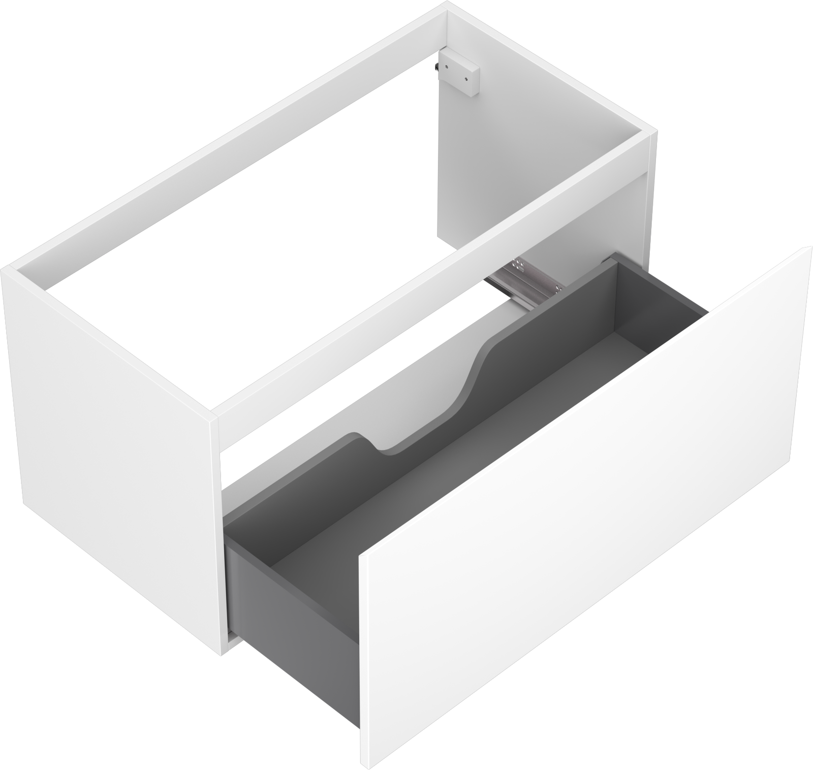 The cutout in the drawer is designed in such a way as to accommodate the siphon, which is essential in sink installations. This allows the furniture to be fully functional without having to give up drawer space for the installation.