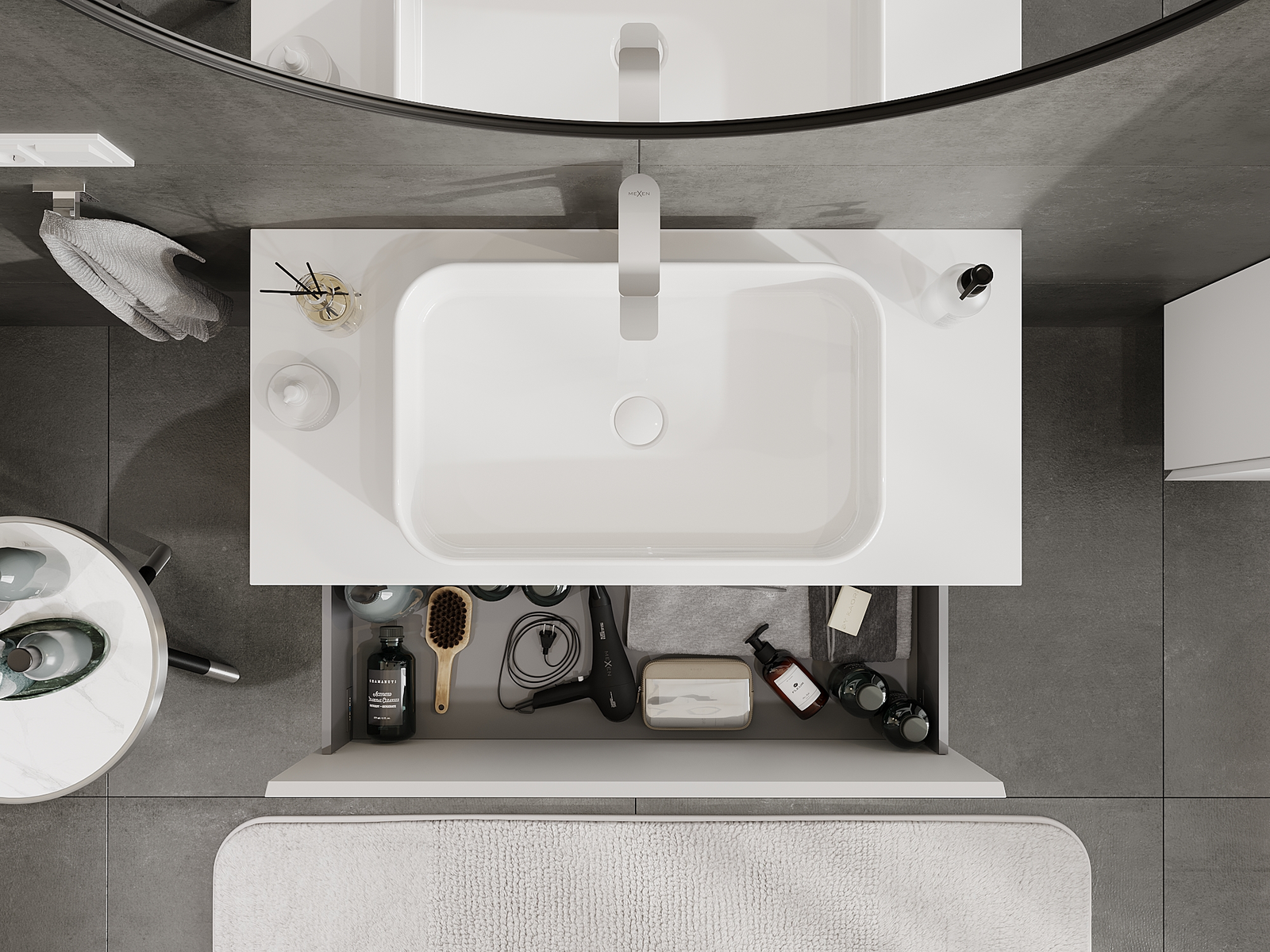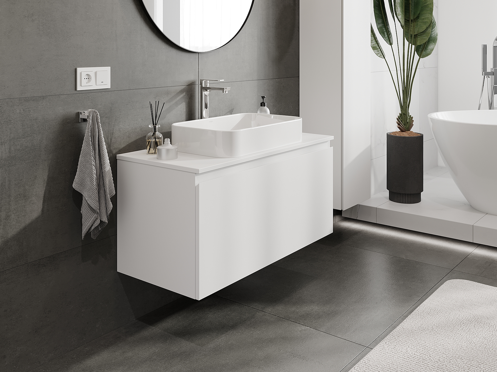 Our modular bathroom furniture can be combined in various colour configurations, allowing for complete personalisation. You can choose both the appearance and functions of individual elements, enabling you to adapt the furniture to your own stylistic and functional preferences.
