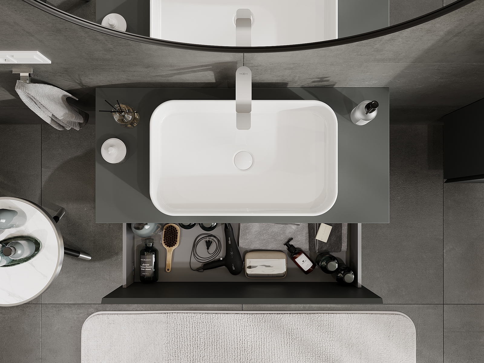 Mexen Orio bathroom cabinet under-sink 100 cm, 1 drawer, matte graphite - 91A10-10047-1-BF66