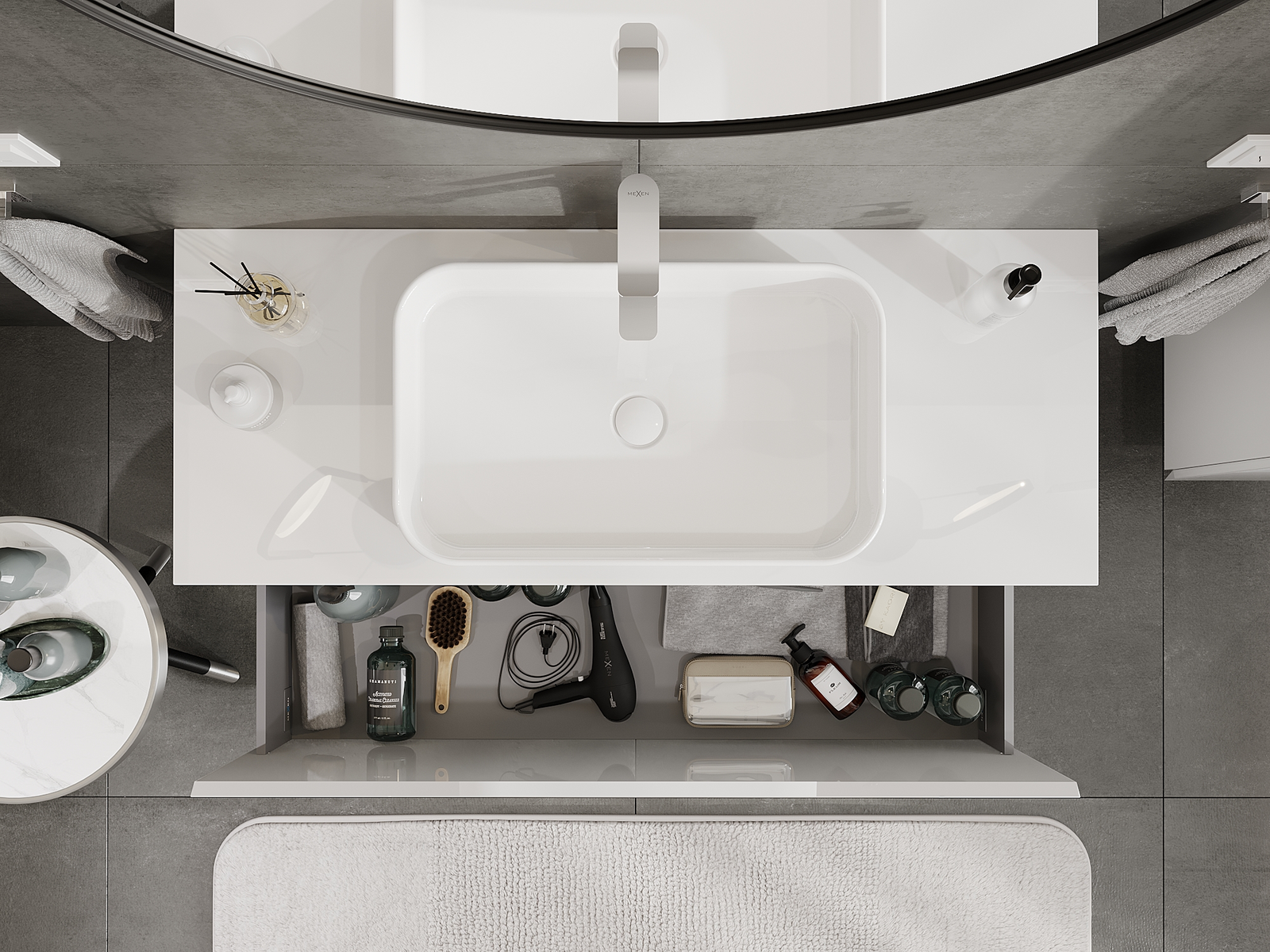 Our modular bathroom furniture can be combined in various colour configurations, allowing for complete personalisation. You can choose both the appearance and functions of individual elements, enabling you to adapt the furniture to your own stylistic and functional preferences.