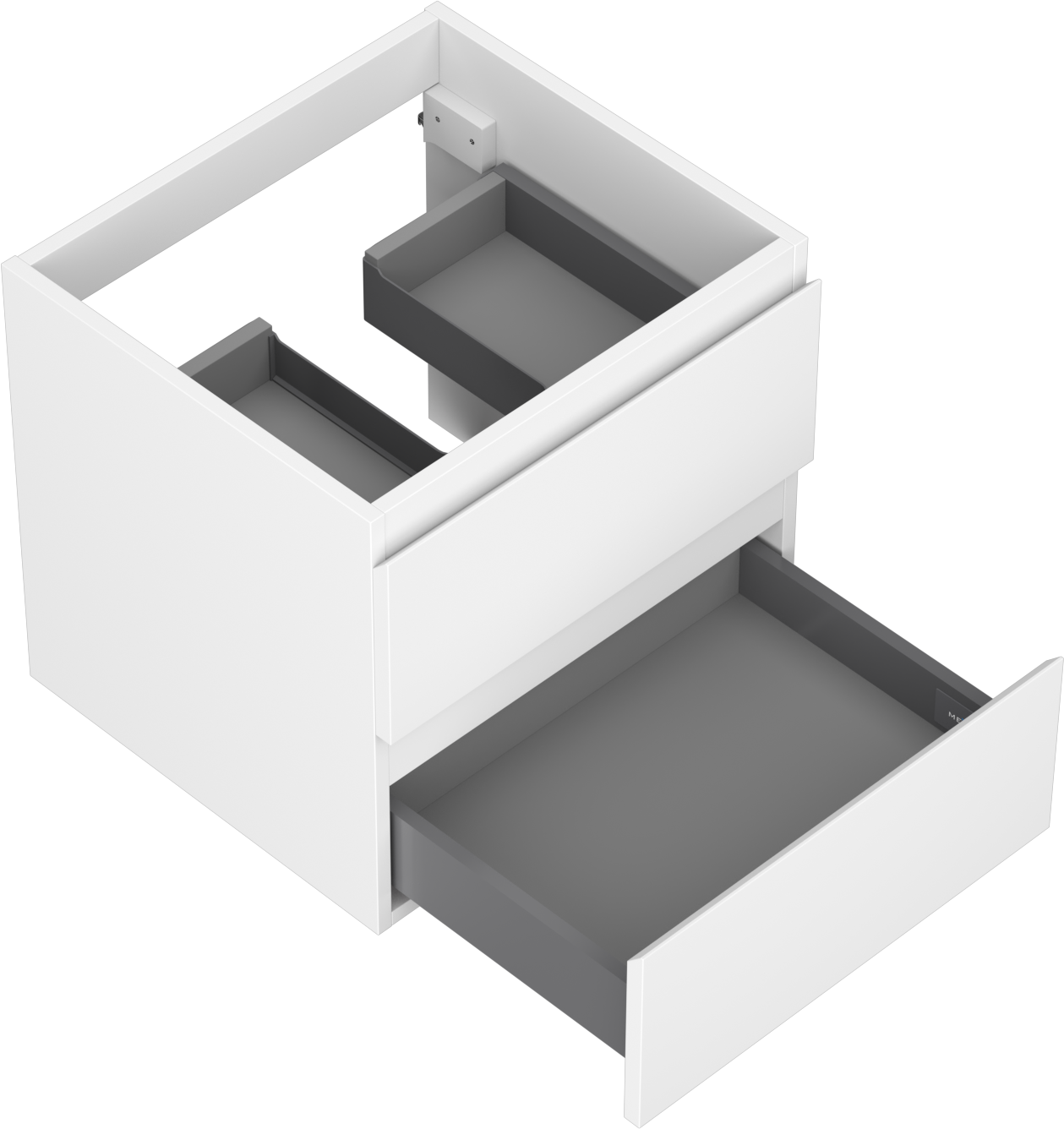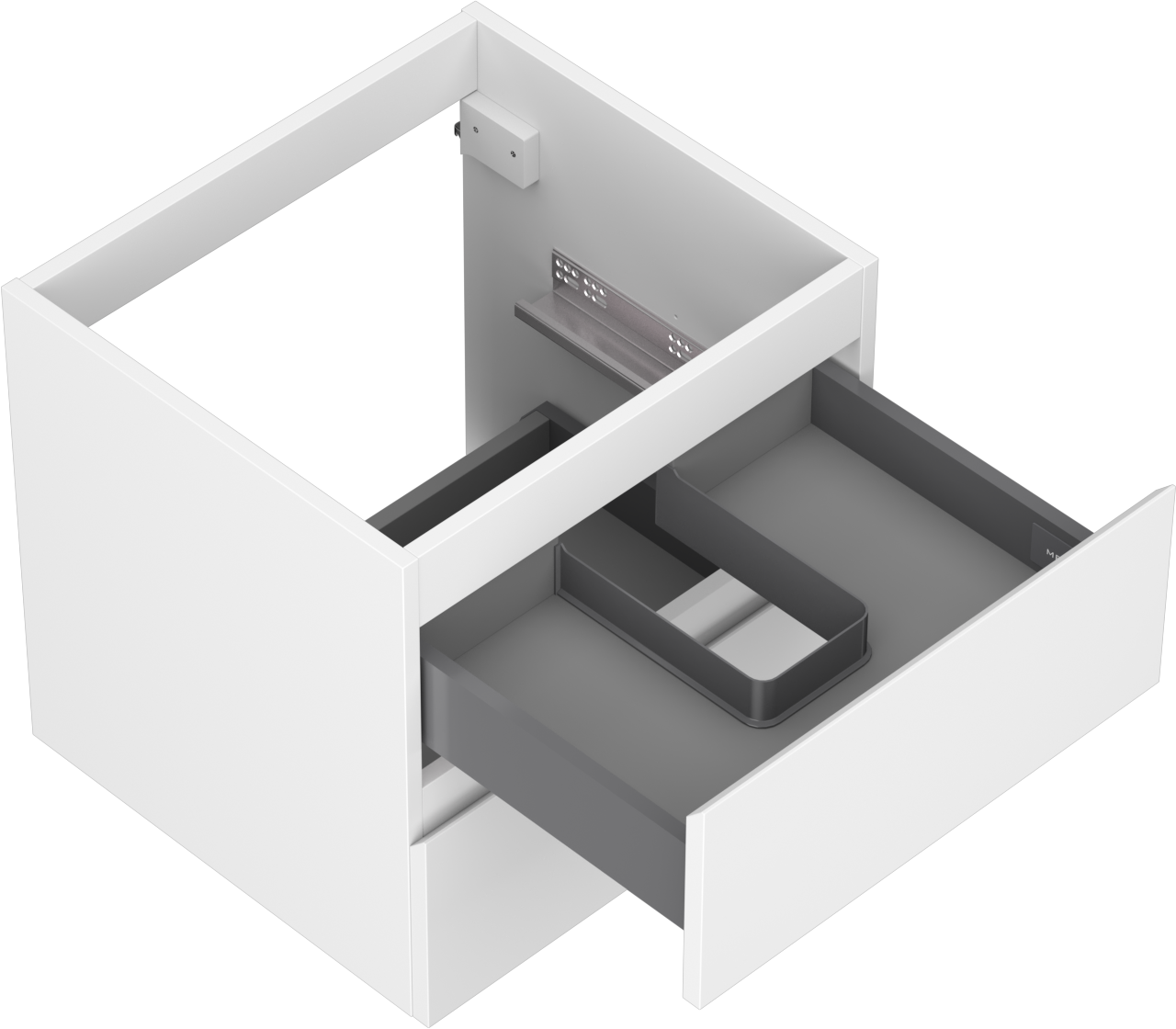 The cutout in the drawer is designed in such a way as to accommodate the siphon, which is essential in sink installations. This allows the furniture to be fully functional without having to give up drawer space for the installation.