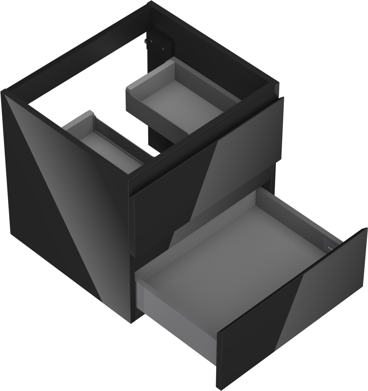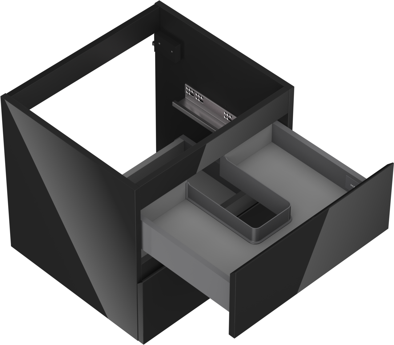 The cutout in the drawer is designed in such a way as to accommodate the siphon, which is essential in sink installations. This allows the furniture to be fully functional without having to give up drawer space for the installation.