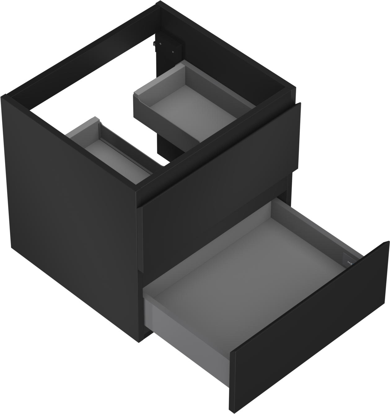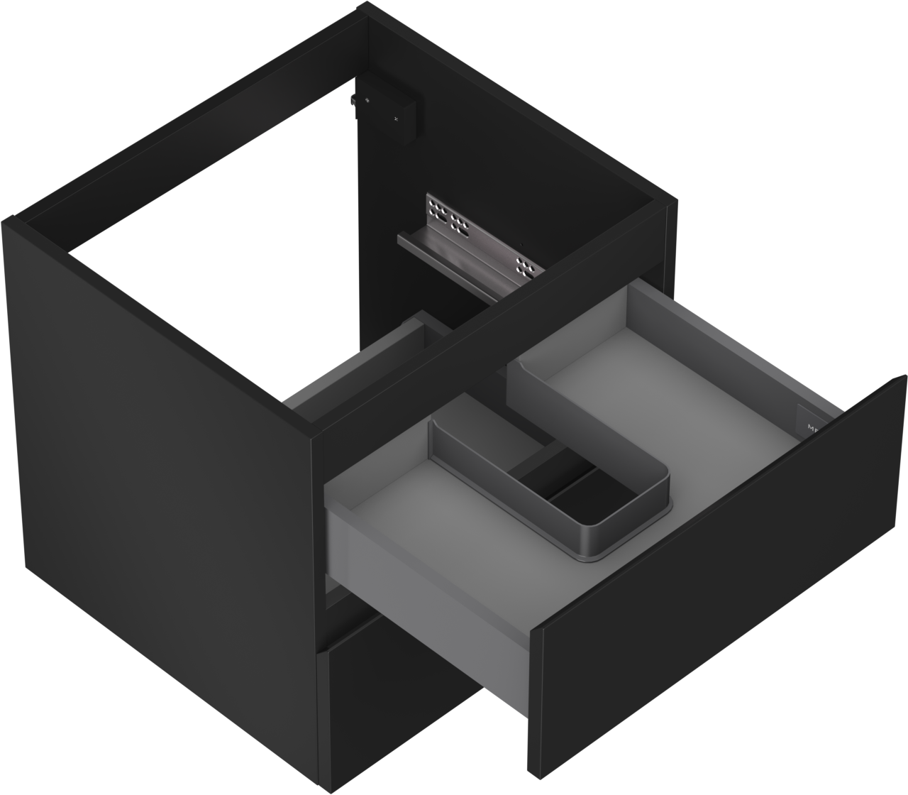 The cutout in the drawer is designed in such a way as to accommodate the siphon, which is essential in sink installations. This allows the furniture to be fully functional without having to give up drawer space for the installation.