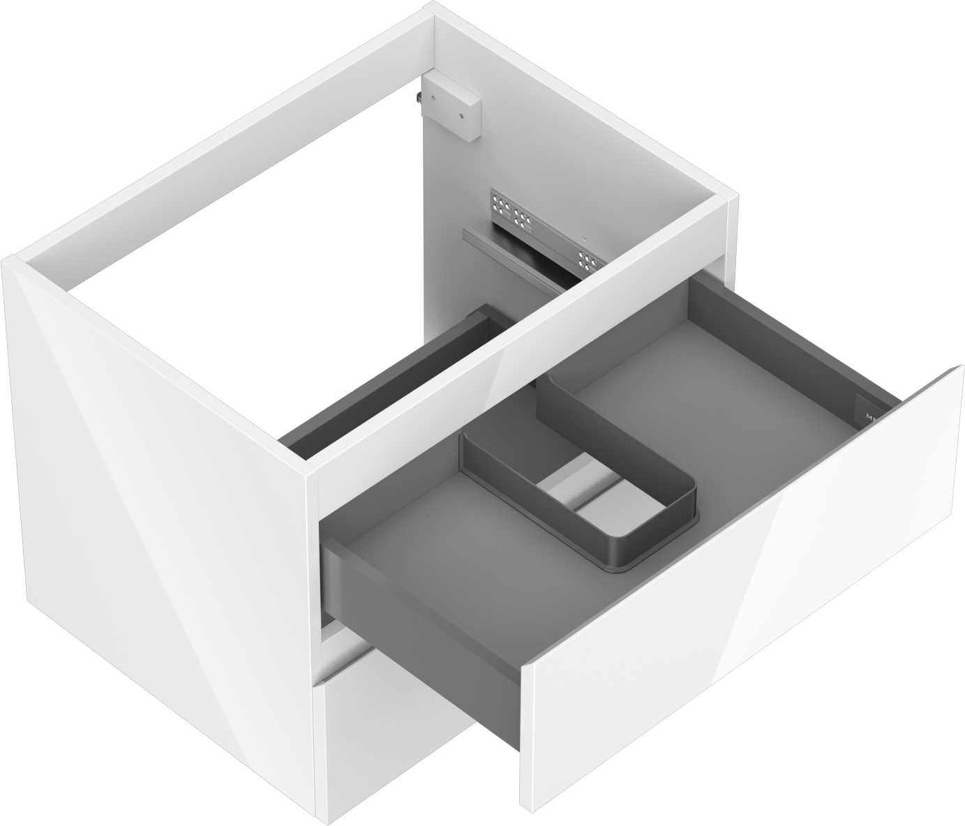 The cut-out in the drawer is designed to accommodate a siphon, which is essential for washbasin installations. This allows the furniture to be installed fully functionally, without having to sacrifice drawer space for the installation.