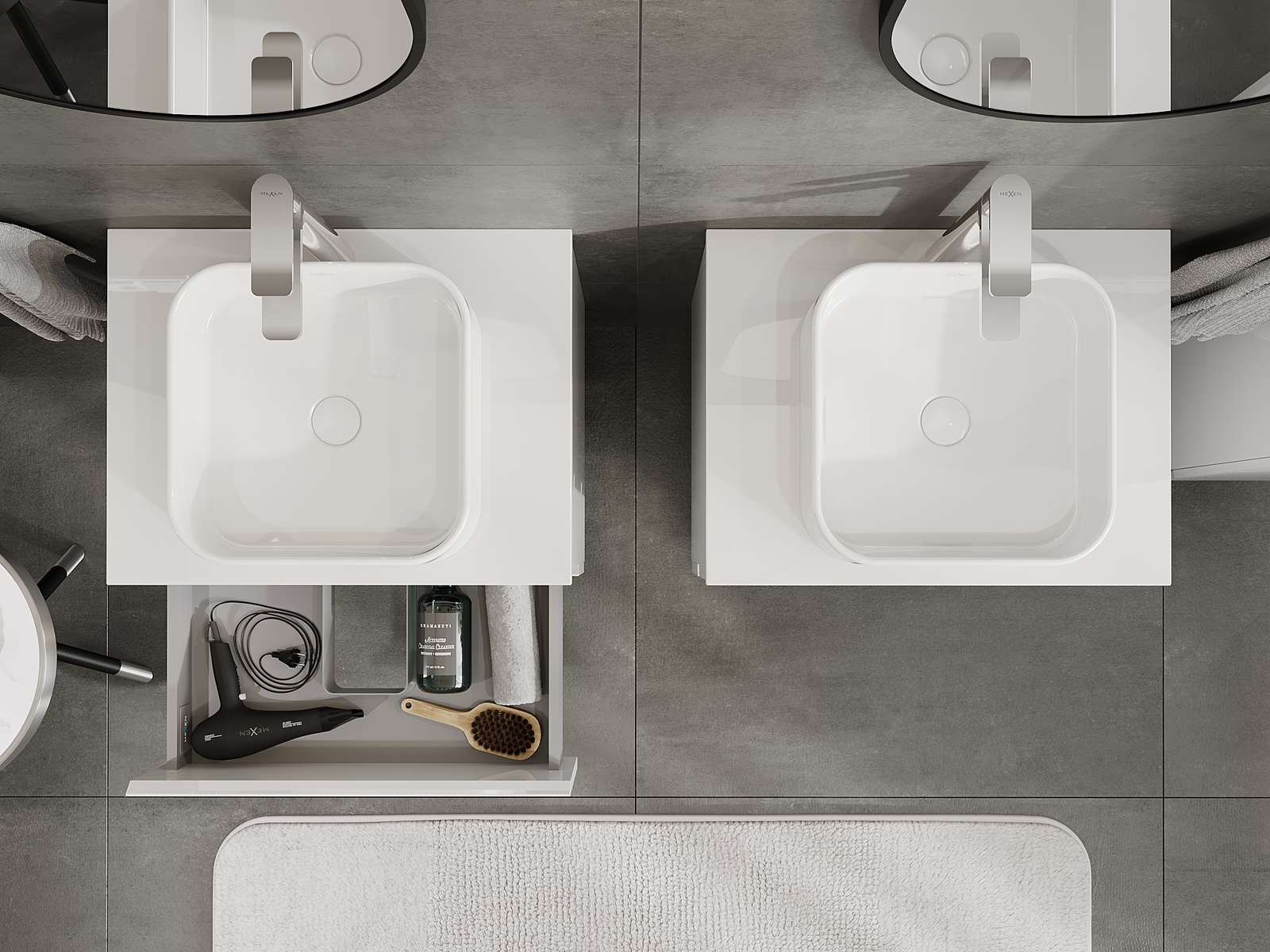 Our modular bathroom furniture can be combined in various colour configurations, allowing for complete personalisation. You can choose both the appearance and functions of individual elements, enabling you to adapt the furniture to your own stylistic and functional preferences.