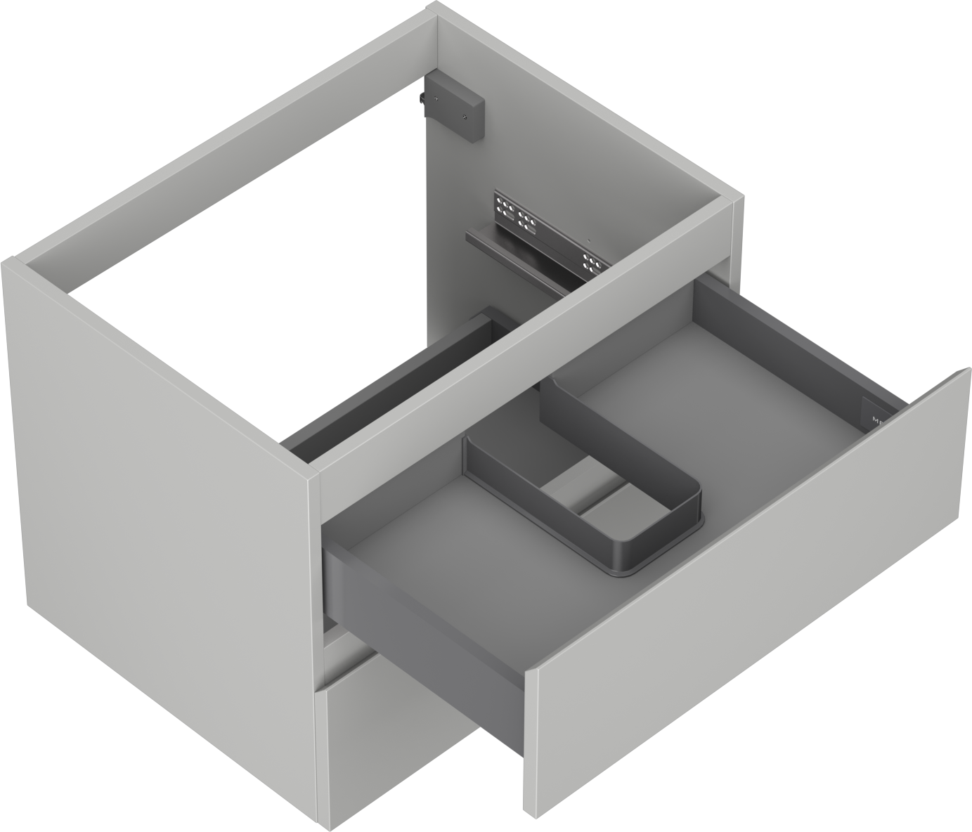 The cutout in the drawer is designed in such a way as to accommodate the siphon, which is essential in sink installations. This allows the furniture to be fully functional without having to give up drawer space for the installation.