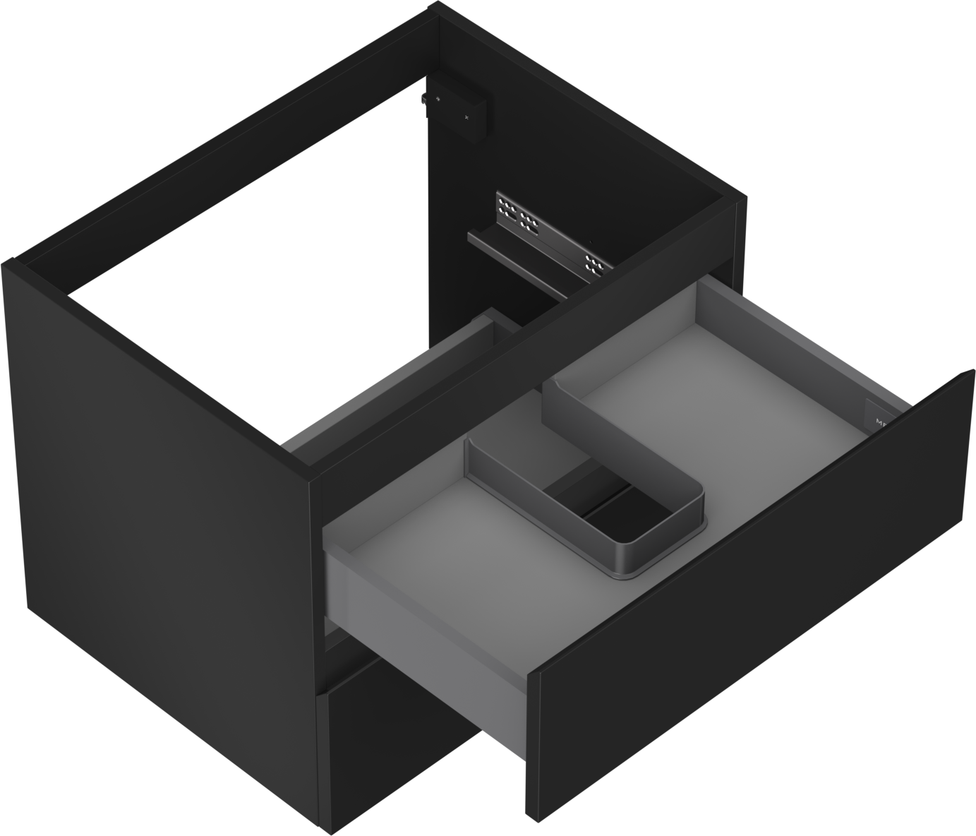 The cutout in the drawer is designed in such a way as to accommodate the siphon, which is essential in sink installations. This allows the furniture to be fully functional without having to give up drawer space for the installation.
