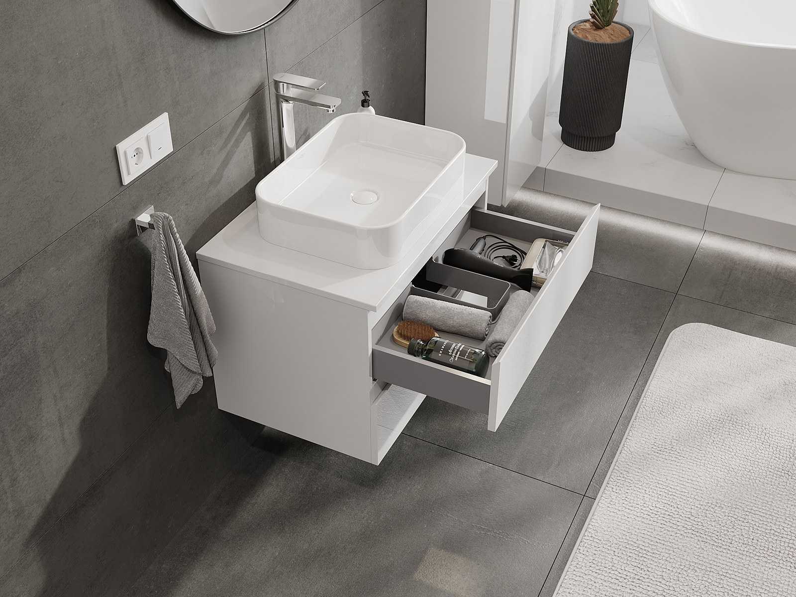 Our modular bathroom furniture can be combined in various colour configurations, allowing for complete personalisation. You can choose both the appearance and functions of individual elements, enabling you to adapt the furniture to your own stylistic and functional preferences.