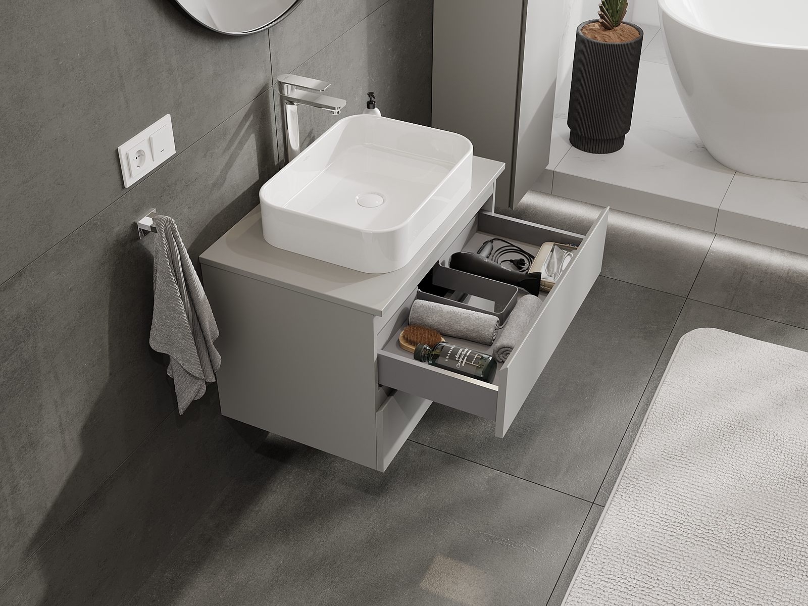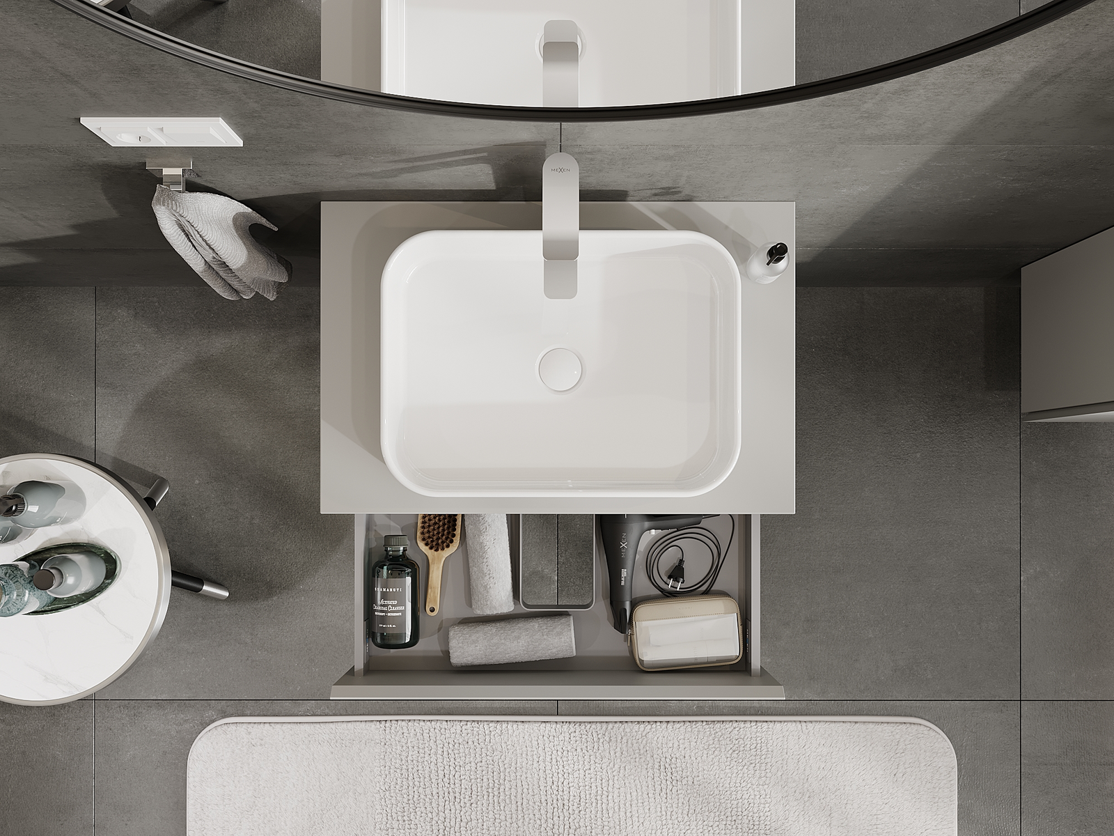Our modular bathroom furniture can be combined in various colour configurations, allowing for complete personalisation. You can choose both the appearance and functions of individual elements, enabling you to adapt the furniture to your own stylistic and functional preferences.