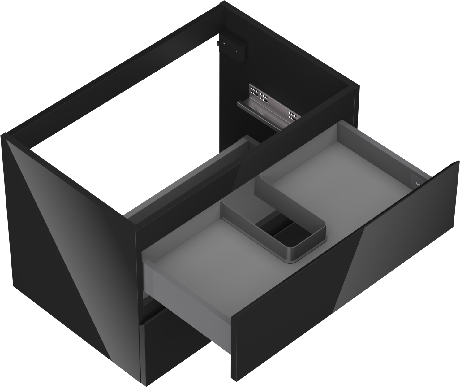 The cutout in the drawer is designed in such a way as to accommodate the siphon, which is essential in sink installations. This allows the furniture to be fully functional without having to give up drawer space for the installation.