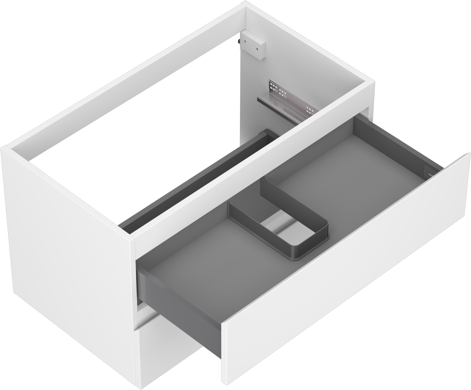 The cutout in the drawer is designed in such a way as to accommodate the siphon, which is essential in sink installations. This allows the furniture to be fully functional without having to give up drawer space for the installation.