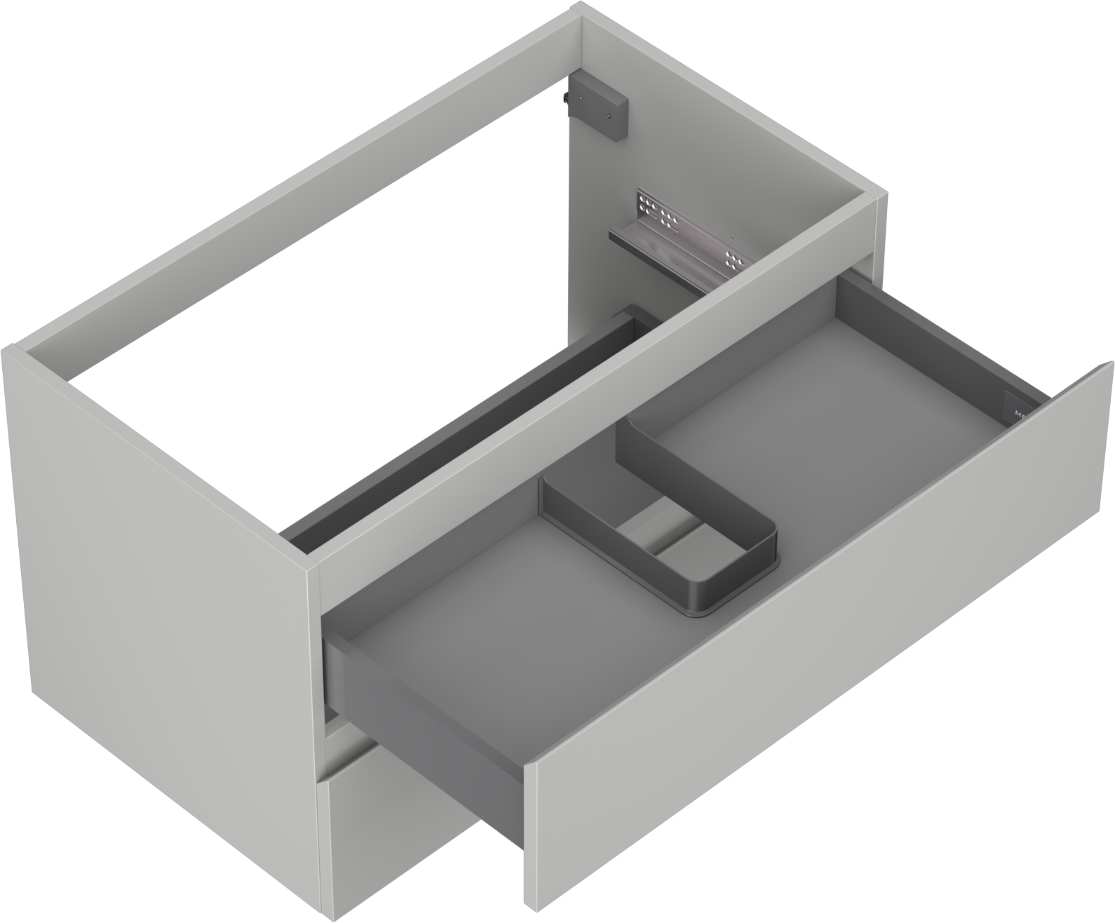 The cutout in the drawer is designed in such a way as to accommodate the siphon, which is essential in sink installations. This allows the furniture to be fully functional without having to give up drawer space for the installation.
