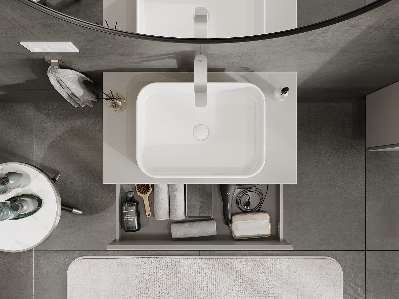 Our modular bathroom furniture can be combined in various colour configurations, allowing for complete personalisation. You can choose both the appearance and functions of individual elements, enabling you to adapt the furniture to your own stylistic and functional preferences.