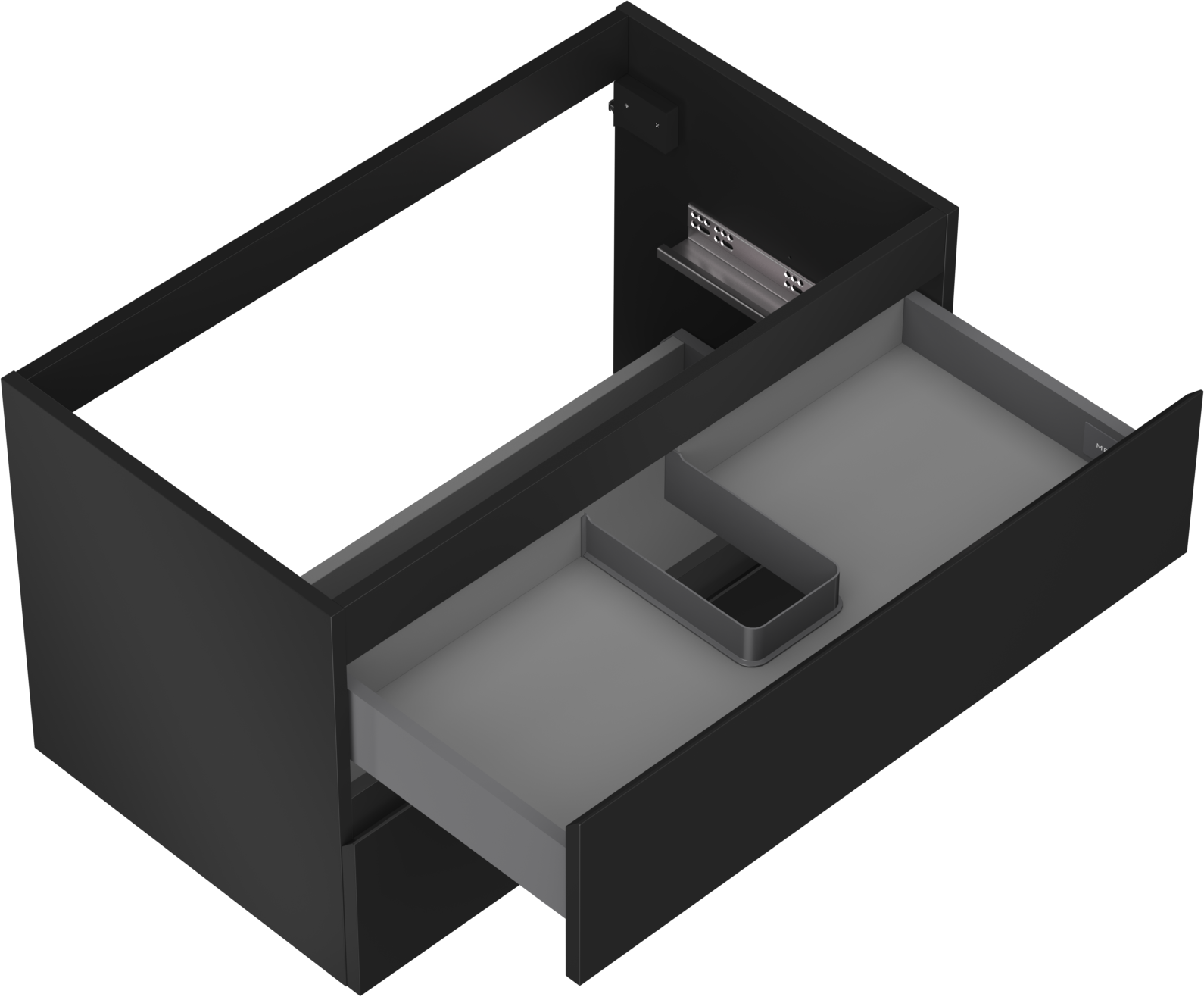 The cutout in the drawer is designed in such a way as to accommodate the siphon, which is essential in sink installations. This allows the furniture to be fully functional without having to give up drawer space for the installation.