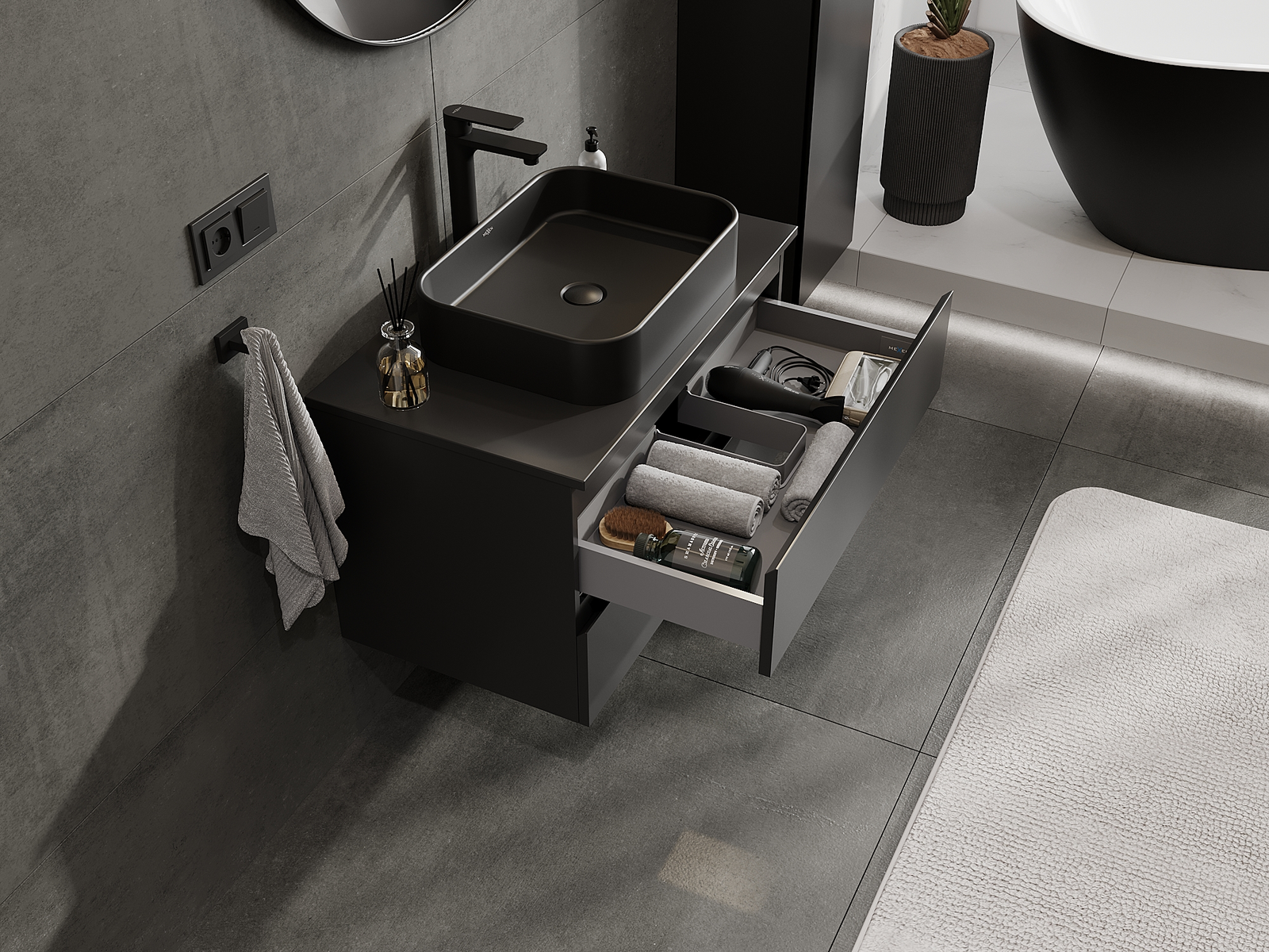 Our modular bathroom furniture can be combined in various colour configurations, allowing for complete personalisation. You can choose both the appearance and functions of individual elements, enabling you to adapt the furniture to your own stylistic and functional preferences.