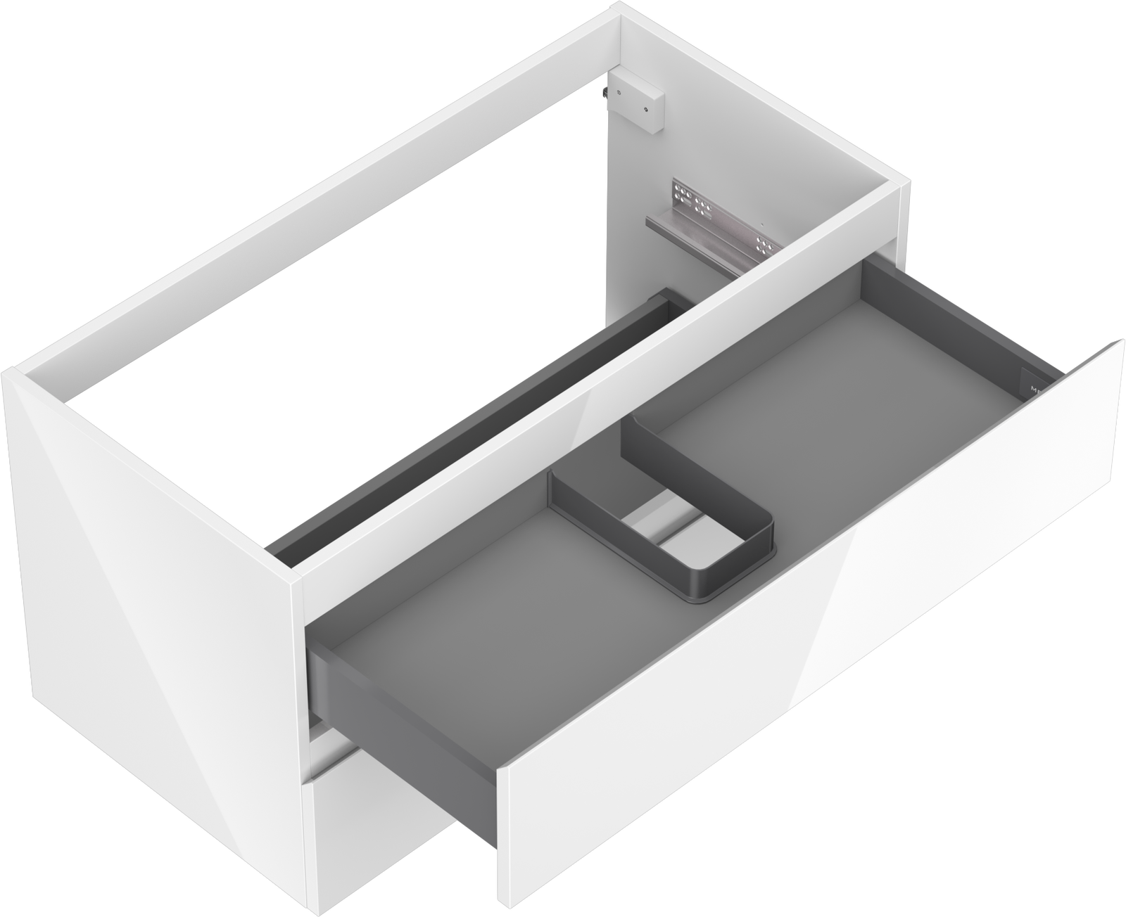 The cutout in the drawer is designed in such a way as to accommodate the siphon, which is essential in sink installations. This allows the furniture to be fully functional without having to give up drawer space for the installation.