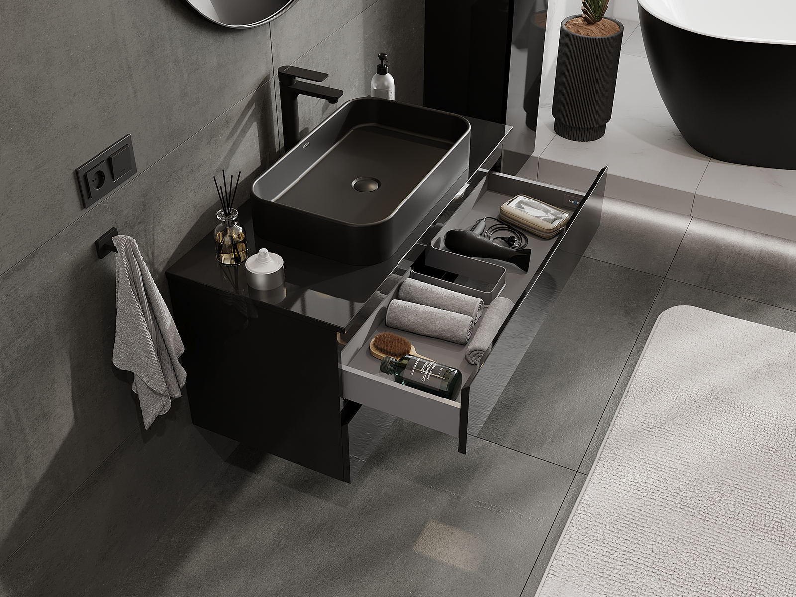 Our modular bathroom furniture can be combined in various colour configurations, allowing for complete personalisation. You can choose both the appearance and functions of individual elements, enabling you to adapt the furniture to your own stylistic and functional preferences.