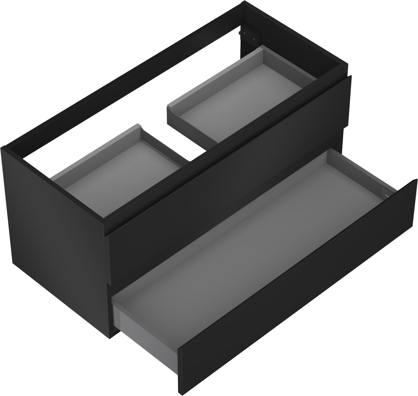 The cutout in the drawer is designed in such a way as to accommodate the siphon, which is essential in sink installations. This allows the furniture to be fully functional without having to give up drawer space for the installation.