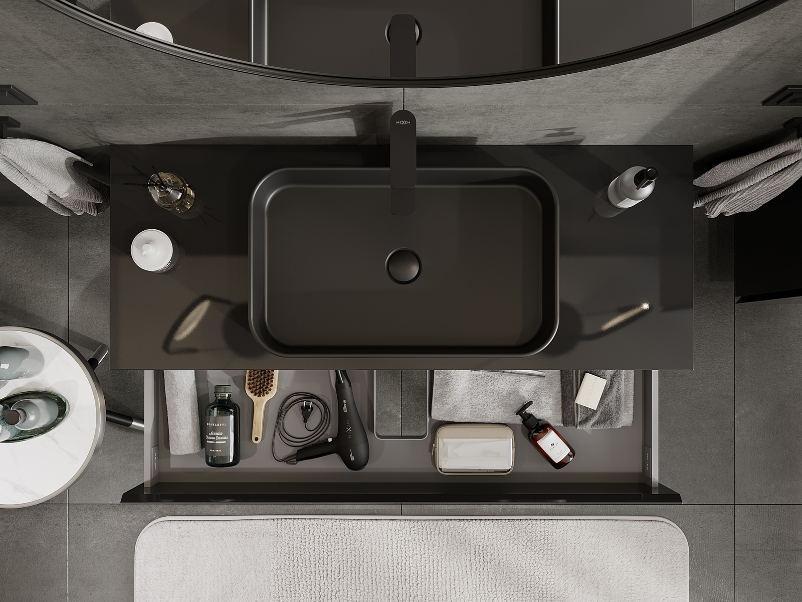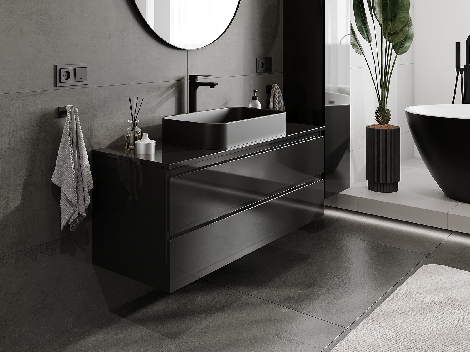 Our modular bathroom furniture can be combined in various colour configurations, allowing for complete personalisation. You can choose both the appearance and functions of individual elements, enabling you to adapt the furniture to your own stylistic and functional preferences.